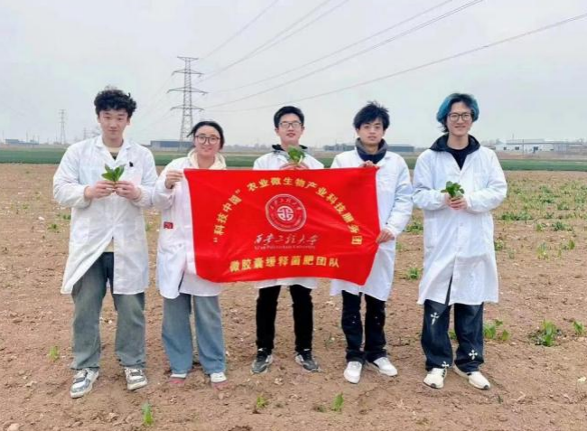 土壤是农业生产的根基,是绿色发展的源泉。团队在寒假期间,深入田间地头,与农民进行了深入的交流学习,了解广大农户的菌肥的需求和期望。团队实地调研发现,很多农户尤其是中小型农业合作社的负责人,他们是很希望可以买到“真”的微生物肥的,但是他们不能确定自己购买的是否是“正品”,不敢轻易的去尝试,避免影响到当年的经济效益;此外,部分大胆的农户自己可以买一些菌肥进行试用,但因缺乏施用指导等,不会施用,或是购买的菌肥适应差、功能单一、稳定性差等原因,导致菌肥应用效果并不理想,使得他们打消了菌肥试用的念头。然而,当团队成员向农户详细介绍了我单位自主研发的多功效耐盐缓控微胶囊菌剂的特点和有效菌体含量高、稳定性强、应用效果稳定的技术优势后,他们表现出极大的兴趣,表示非常愿意尝试使用这种新型微生物菌剂。
