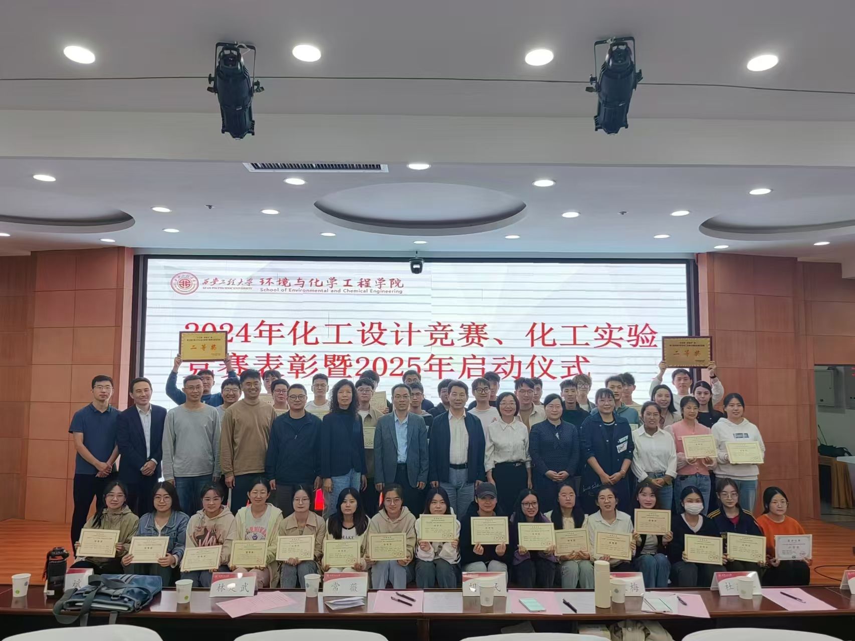 在图书馆一楼报告厅举行2024年全国化工设计大赛及化工实验大赛表彰大会暨2025年大赛启动仪式。出席会议的有学院党委书记胡西民、副书记林定武、副院长常薇,竞赛负责人赵亚梅、全体指导教师与全体辅导员。