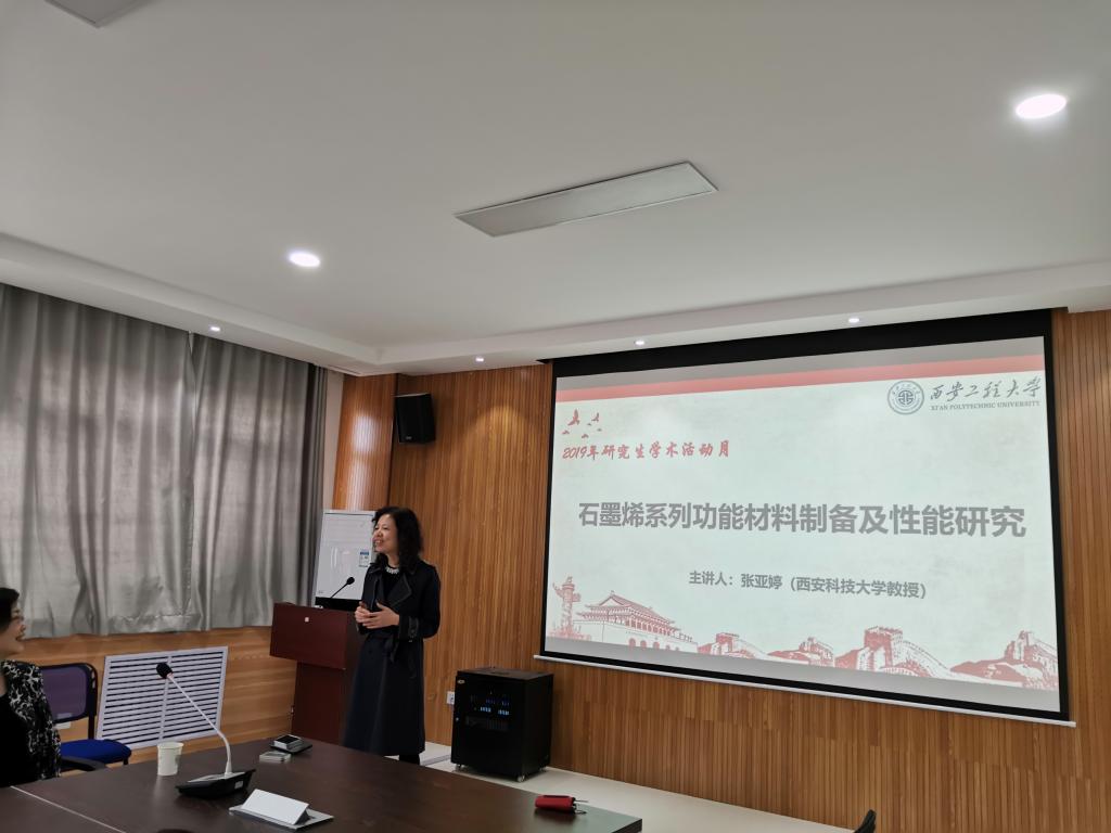 在507会议室举办了2019年研究生学术活动月活动,邀请西安科技大学教授张亚婷作了题为“石墨烯系列功能材料制备及性能研究”的学术报告。925直播足球