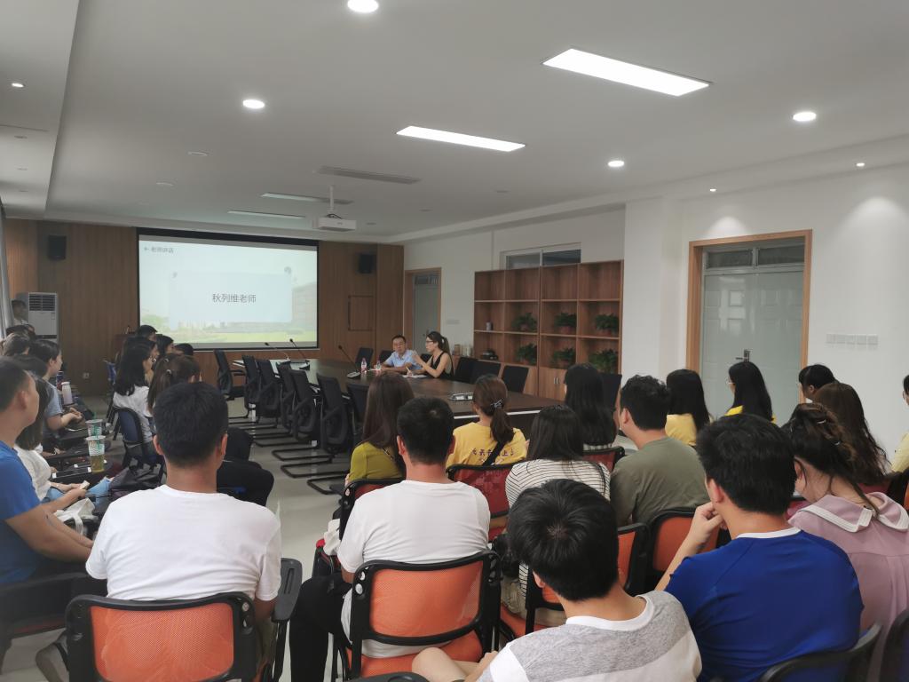 林老师首先代表学院对同学们加入环化大家庭表示热烈欢迎,并对他们提出殷切希望,期盼大家能够尽快适应研究生生活,快速从本科的学习方法中转变过来,用饱满的热情投身科研,成为优秀的环化才子。随后林老师重点就研究生档案管理、实验室安全、研究生培养计划等研究生管理方面的问题做了详细介绍并对学生疑问进行详细解答。