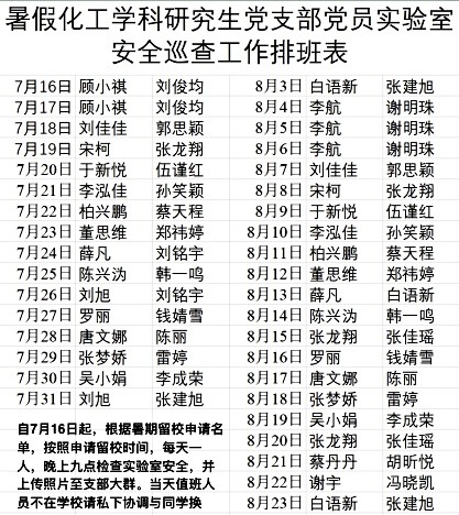 化工学科研究生党支部暑期扎实开展实验室安全巡查工作