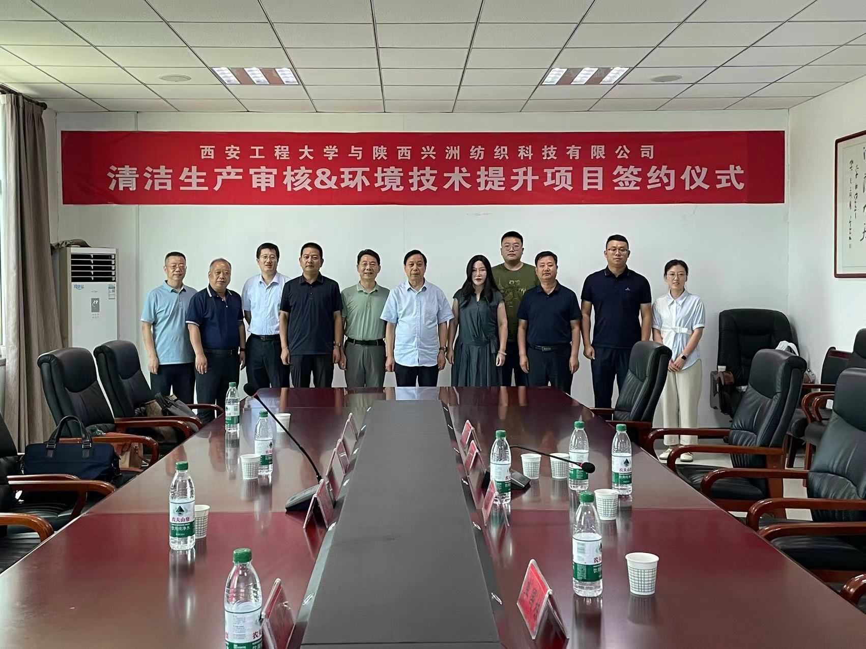 党委书记胡西民、院长武占省、程刚教授和纺织科学与工程学院院长孙润军等一行前往陕西兴洲纺织科技有限公司参加“清洁生产审核&环境技术提升”项目签约仪式。常兴镇党委书记冯伟、镇长李小博,陕西省纺织行业协会会长严家民,陕西兴洲纺织科技有限公司周洋总经理、杨轩副总经理等出席,签约仪式由李小博镇长主持。