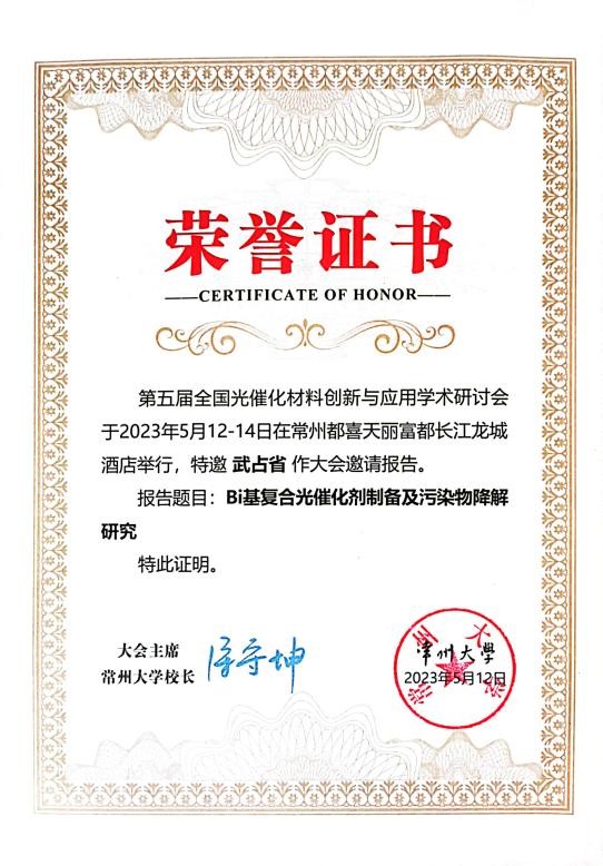 武占省教授、李云锋教授受邀参会,并分别在大会上作了题为“Bi基复合光催化剂制备及污染物降解研究”、“氮化物光催化剂的设计合成与性能研究”学术报告。此外,武占省教授作为会议特邀嘉宾主持分会场。会后,围绕着功能光催化材料的开发、碳循环、碳中和等方面和与会专家及代表进行了深入交流与讨论。