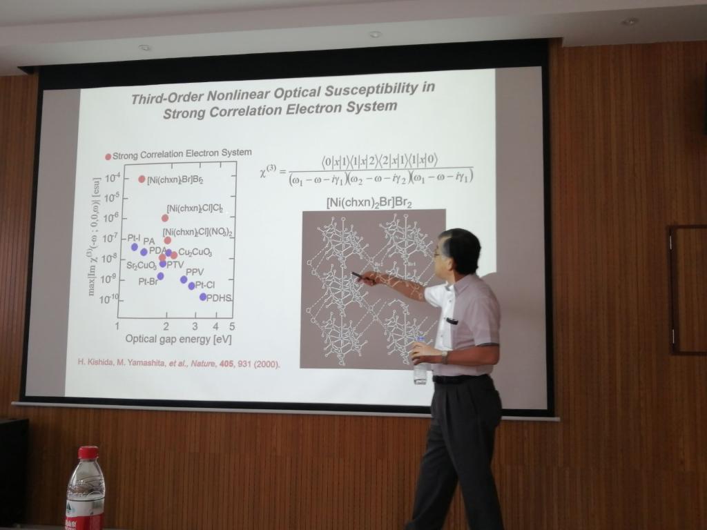 会议室做了题为“Nano-Wire Halogen-Bridged Pd(III) Complxees: Syntheses, Phase Transitions, and Charge Fluctuations”的学术报告。在报告中,他对其团队近几年研究的新型分子基磁性材料及纳米材料进行了深入浅出的阐述。报告过程中,Masahiro Yamashita教授简单介绍了日本东北大学,并欢迎有兴趣的同学申请去日本留学,并针对“What is science?”这一深刻话题与现场老师及学生进行探讨。925足球网