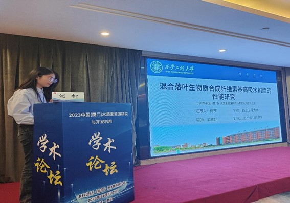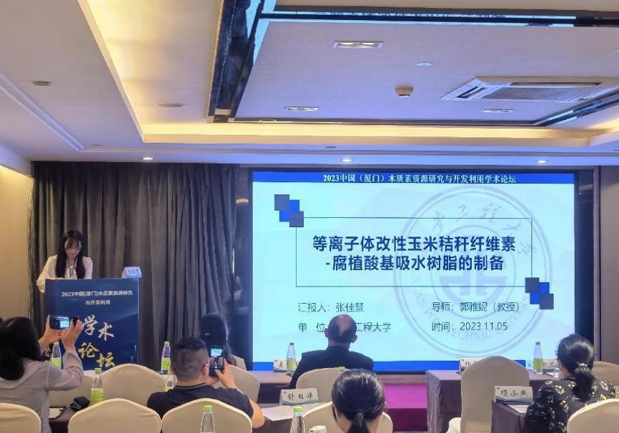 郭雅妮教授携课题组研究生张佳慧、魏立杰、何柳共同参会。在学术论坛中张佳慧、何柳分别作了题为“等离子体改性玉米秸秆纤维素-腐植酸基吸水树脂的制备”、“混合落叶生物质合成纤维素基高吸水树脂的性能研究”学术汇报。会后,郭雅妮教授与参会专家及代表围绕着生物质转化及能源技术、木质素研究和开发等方面进行了深入交流与讨论。(供稿:郭雅妮;审核:武占省)