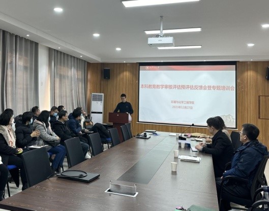 20231227日下午,为迎接新一轮本科教育教学审核评估,925足球网 于临潼校区8-507会议室召开了本科教育教学审核评估预评估反馈会暨专题培训会。评建办秘书、教务处副处长胡新煜受评建工作办公室委托,为925足球网 全体教职工进行了审核评估专题培训。会议由胡西民书记主持,学院主持工作副院长武占省、副院长常薇出席了会议。