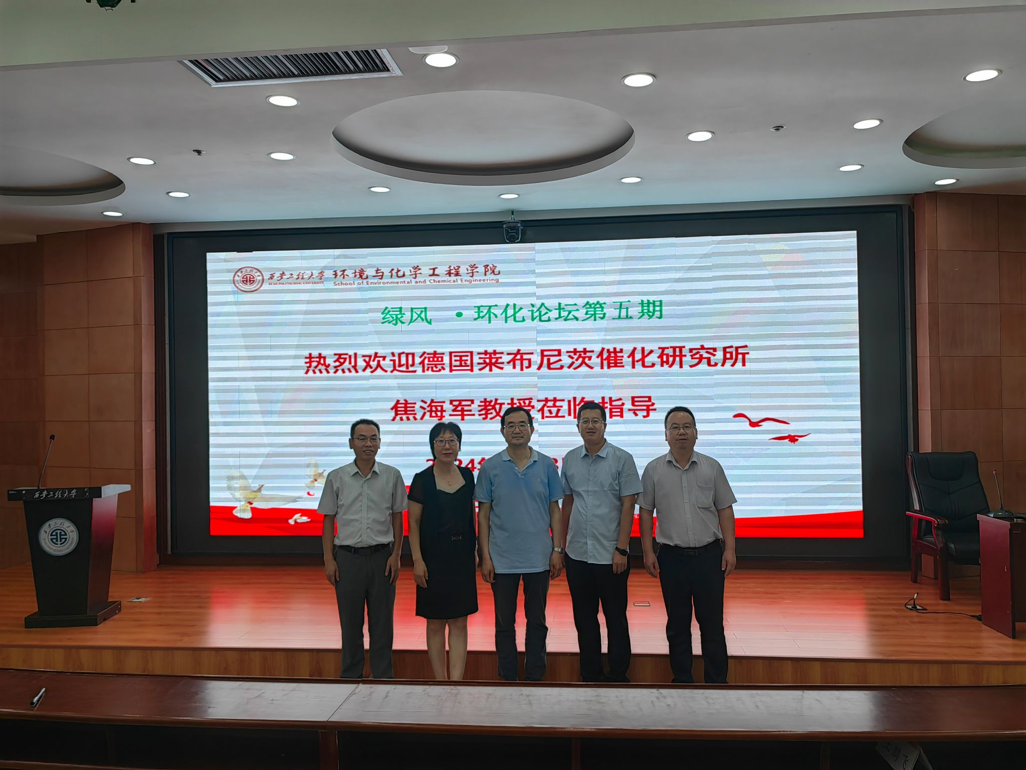 5月23日,925直播足球 第五期绿风环化论坛报告会在临潼校区图书馆一楼报告厅举行,会议邀请德国莱布尼茨催化研究所焦海军教授作了题为《Interplay between Theory and Experiment in Pincer Complexes Catalyzed Hydrogenation, Dehydrogenation, and Transfer Hydrogenation Reactions》的学术报告,925直播足球 主持工作副院长武占省、党委副书记林定武、环工系主任李茹、化工系副教授李扬、部分教师、研究生、本科生近200人参加了报告会。会议由925直播足球 院长助理武峥主持。