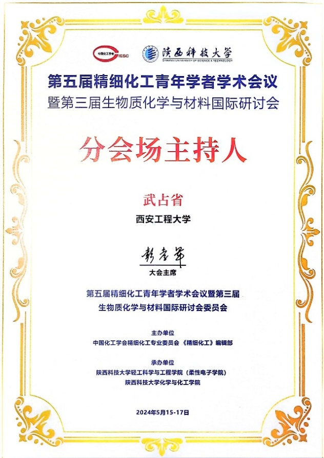 5月16日,由中国化工学会和《精细化工》编辑部联合主办,陕西科技大学轻工科学与工程学院(柔性电子学院)和化学与化工学院联合承办的第五届精细化工青年学者学术会议暨第三届生物质化学与材料国际研讨会在西安开幕。会议有中国科学院田禾院士、彭孝军院士、朱为宏院士,中国工程院王双飞院士、吕剑院士,中国化工学会副秘书长宫艳玲教授、国家级人才以及来自全国116家高校、单位的近500名中青年科学家出席开幕式。以“聚焦前沿交叉领域推动产业高效发展”为主题展开。