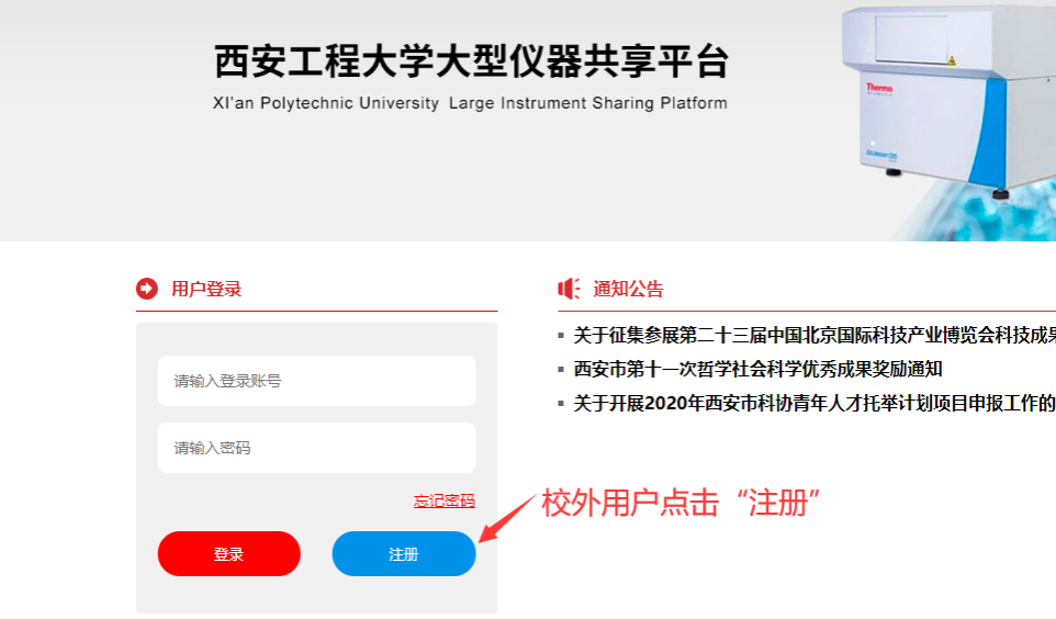西安工程大学大型仪器共享平台是实现大型仪器设备对外共享、信息发布、仪器设备预约、预约信息统计分析等一体化管理平台,平台分为前台门户网站和后台管理系统,前台门户网站是学校师生、校外人员获取大型仪器共享资源、仪器预约、信息查询、接收的途径,后台管理系统是仪器设备管理员管理仪器信息、发布仪器共享、审核仪器预约、信息统计的管理维护平台。