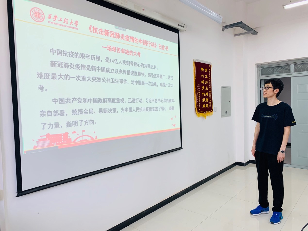《抗击新冠肺炎疫情的中国行动》白皮书梳理和回顾了我国抗击疫情的伟大历程,通篇用事实和数据说话,体现人民至上、生命至上的情怀,展现了国家抗疫全景,真实再现一幕幕感人的抗疫故事,再一次强调了构建人类卫生健康共同体理念的迫切性。支部党员通过诵读“一场艰苦卓绝的大考”、“防控与救治两个战场协同作战”、“14亿中国人民都是抗击疫情的伟大战士”、“共同构建人类卫生健康共同体”等几个重点节段,进一步增强了全体党员对党的坚定信仰、对社会主义国家的忠诚和对英勇的中华儿女的无限热爱。