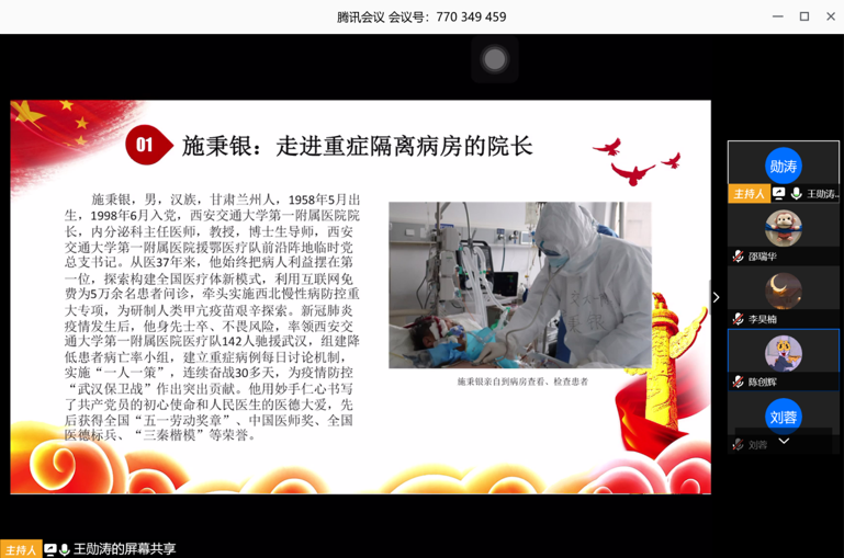 环境工程专业学生党支部召开向“三秦楷模”,“全省优秀共产党员”专题学习线上视频组织生活会