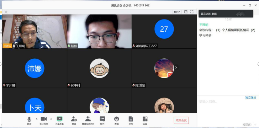 绿风环保协会党支部召开向施秉银、张怡、雷根平、乔锦仁同志学习的线上主题党日活动,会议由党支部书记王理明主持。