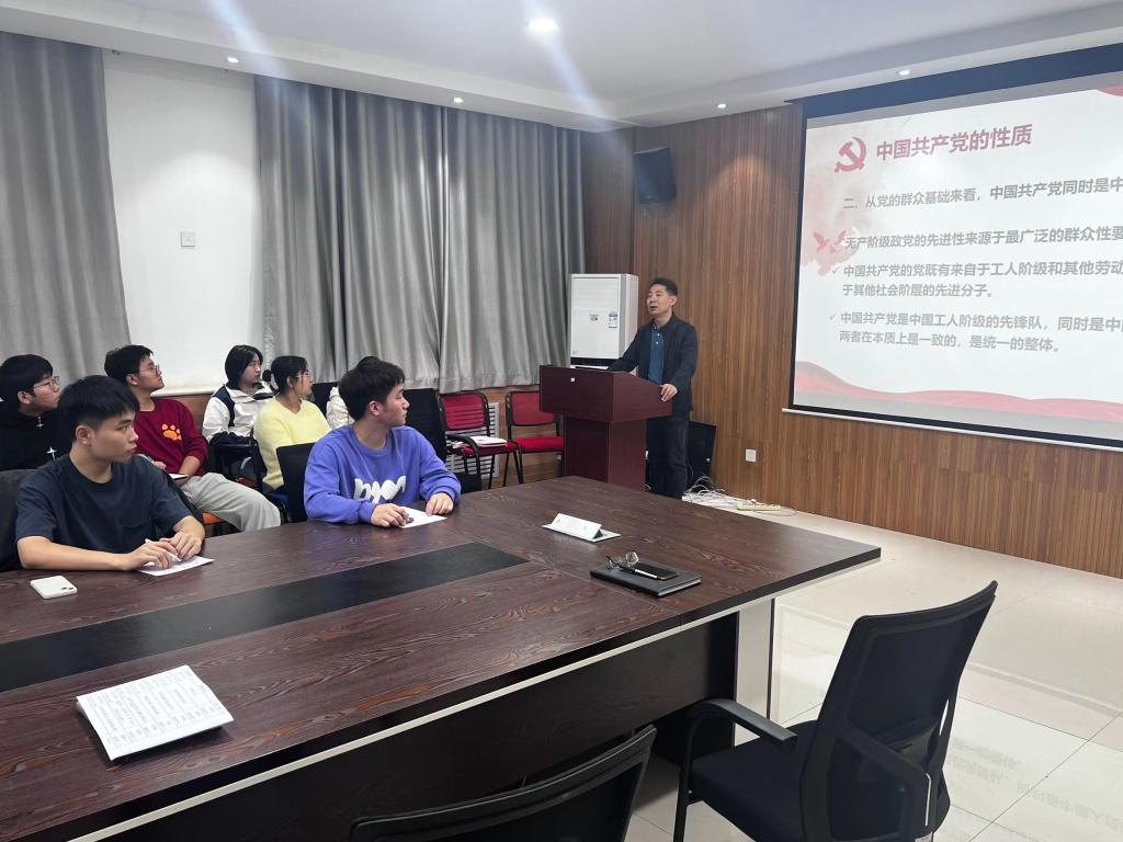 开班仪式后,党委书记胡西民以《党的性质和指导思想及宗旨》为题进行党课第一讲。从党的阶级性、先进性、党的地位和作用等方面阐释党的性质、最高理想和根本宗旨,围绕党的百年发展史介绍了不同时期党的指导思想,要求各位同学牢记党的性质,学习贯彻习近平新时代中国特色社会主义思想,努力做到全心全意为人民服务。