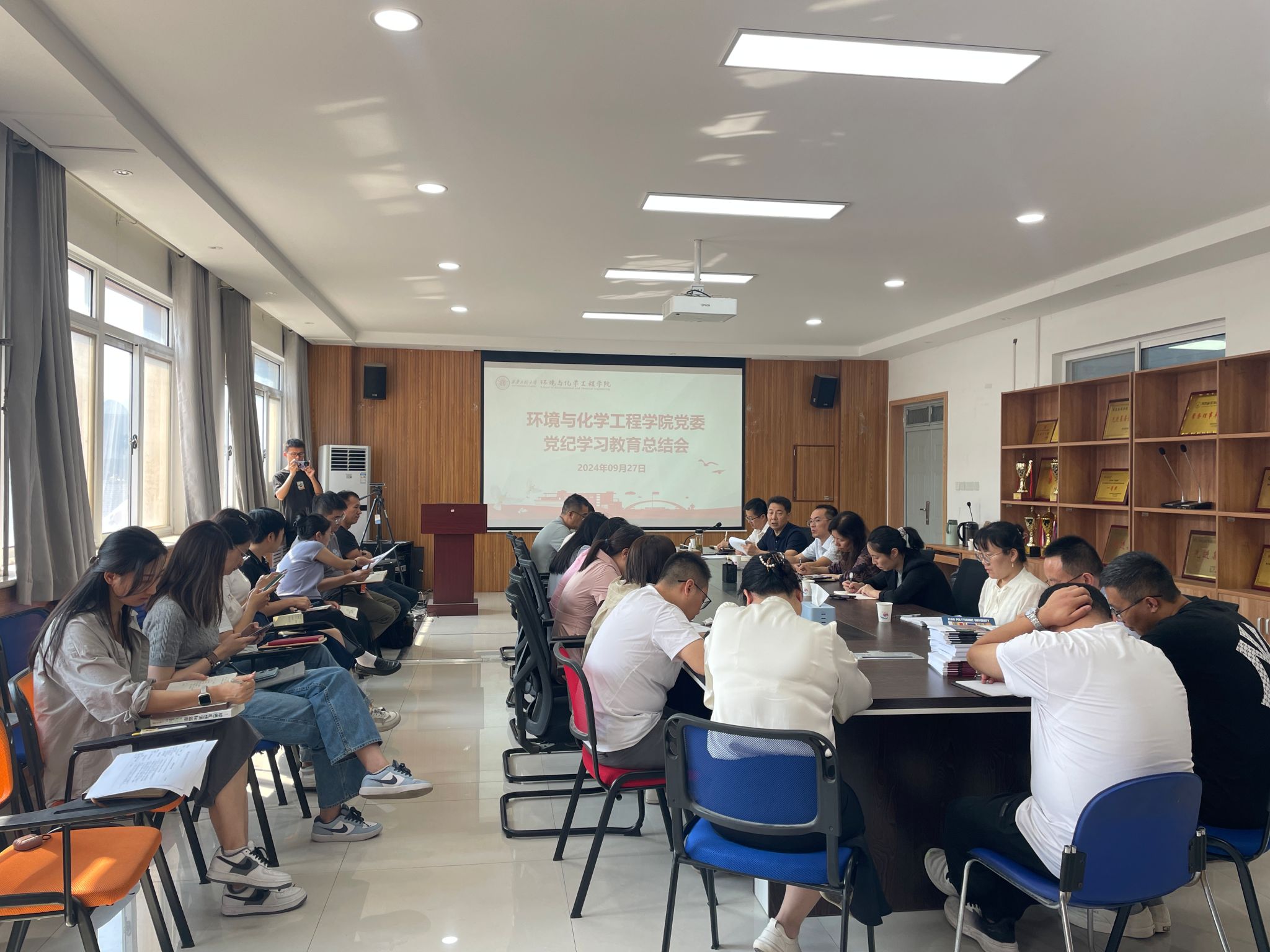 党委于学院507会议室召开党纪学习教育总结会。学院党委委员、党政领导班子、师生党支部书记及教师党员代表参加会议,会议由学院党委书记胡西民主持。