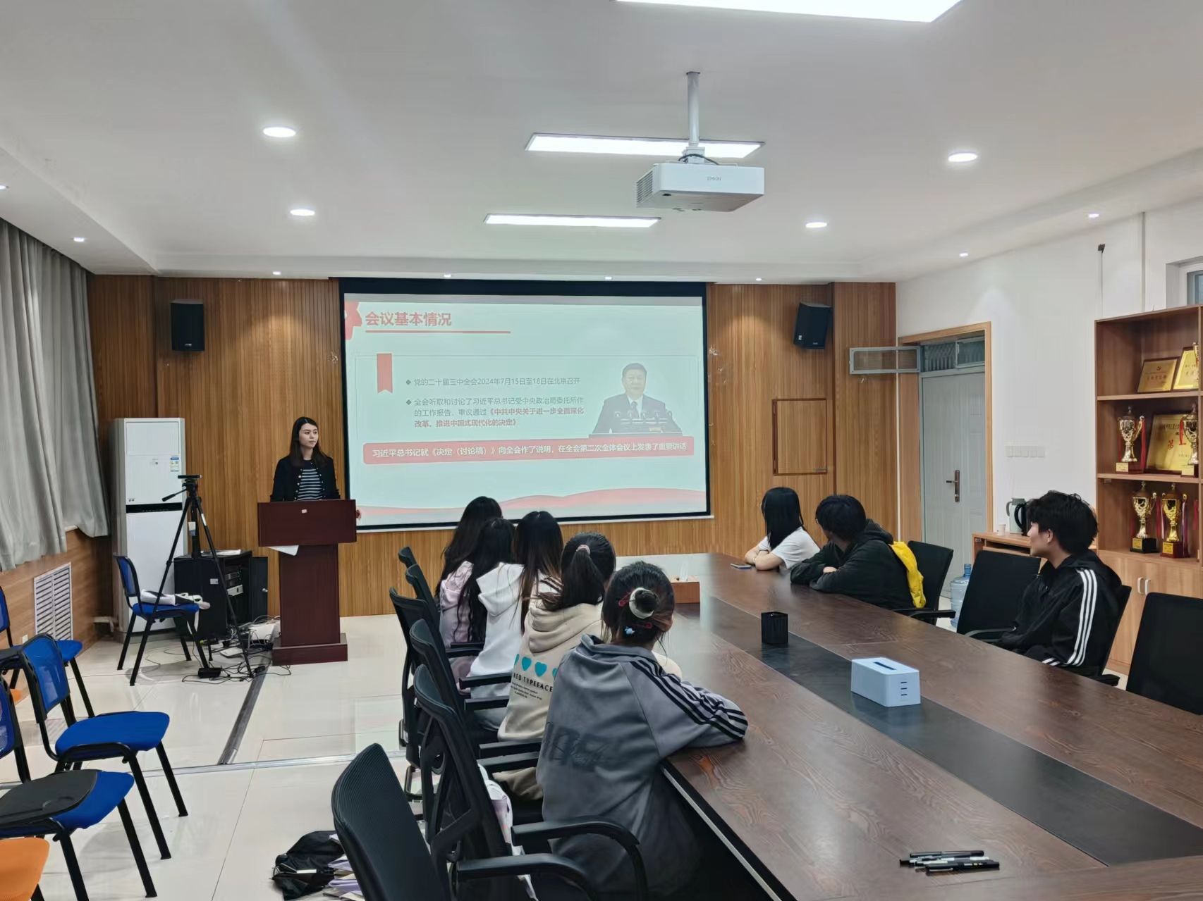 首先,盖潇宇向同学们介绍了党的二十届三中全会的基本情况,她强调,党的二十届三中全会是在以中国式现代化全面推进强国建设、民族复兴伟业的关键时期召开的一次十分重要的会议,不仅为青年学生指明了方向,也赋予了青年一代重要的责任与使命。