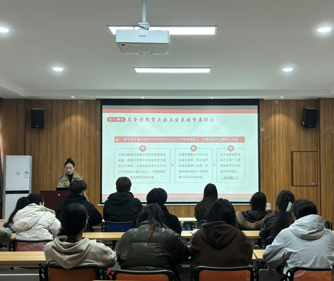 会上,任子瑜逐字逐句带领大家学习了习近平总书记在全国教育大会上发表的重要讲话,并就主要内容进行详细解读。她指出,学习坚决贯彻落实习近平总书记重要讲话精神是支部当前和今后一个时期的重要政治任务,要求支部党员通过集体和自学等方式,深入领会大会精神,不断提高政治站位,强化责任担当,将学习成果转化为推动工作的实际行动,确保学习取得实效。