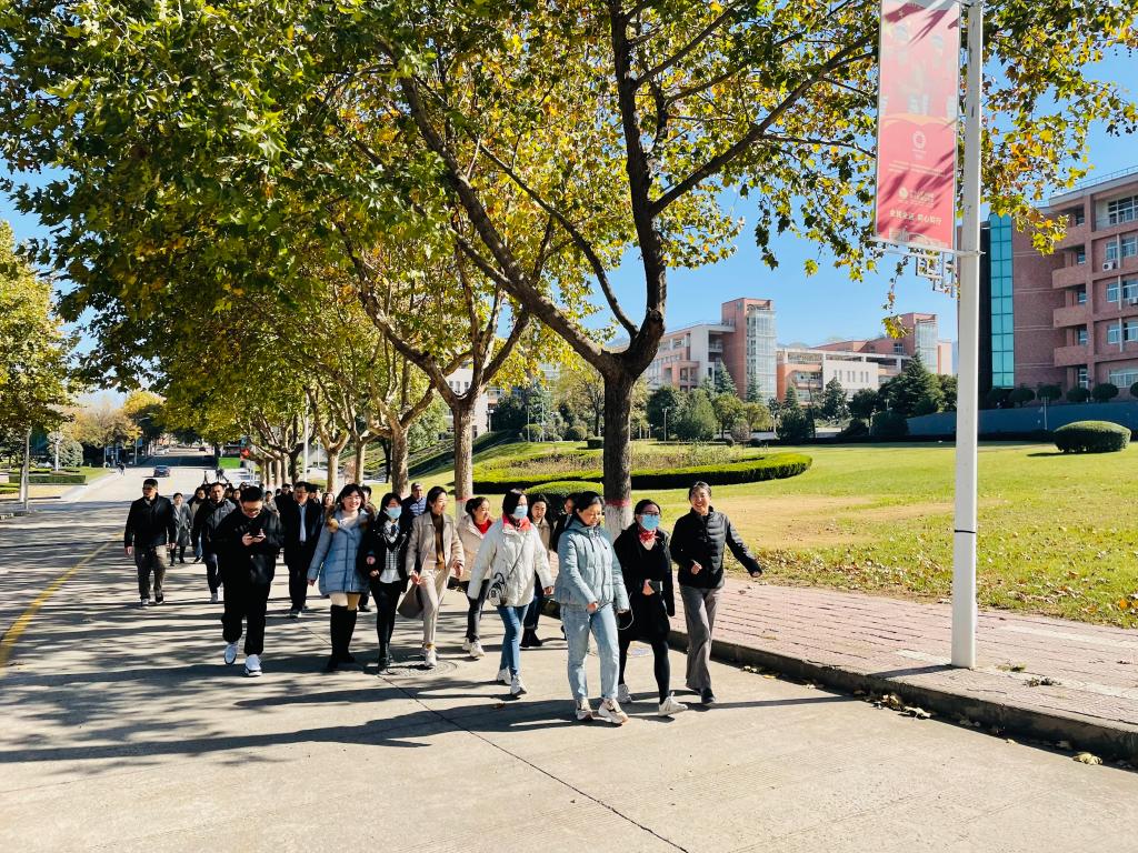 活动正式开始前,学院工会委员王理明作动员讲话,鼓励大家在业余时间加强锻炼,保持良好的身体和精神状态,以便更好地投入到学校各项教学研究与管理服务之中,他还就活动路线、形式、安全注意事项进行了提醒。活动期间,秋高气爽,阳光明媚,教师们精神抖擞,健步如飞,迈着有力的步伐围绕活动规定的路线进发,在欢声笑语中,领略校园美景,锻炼身体素质。
