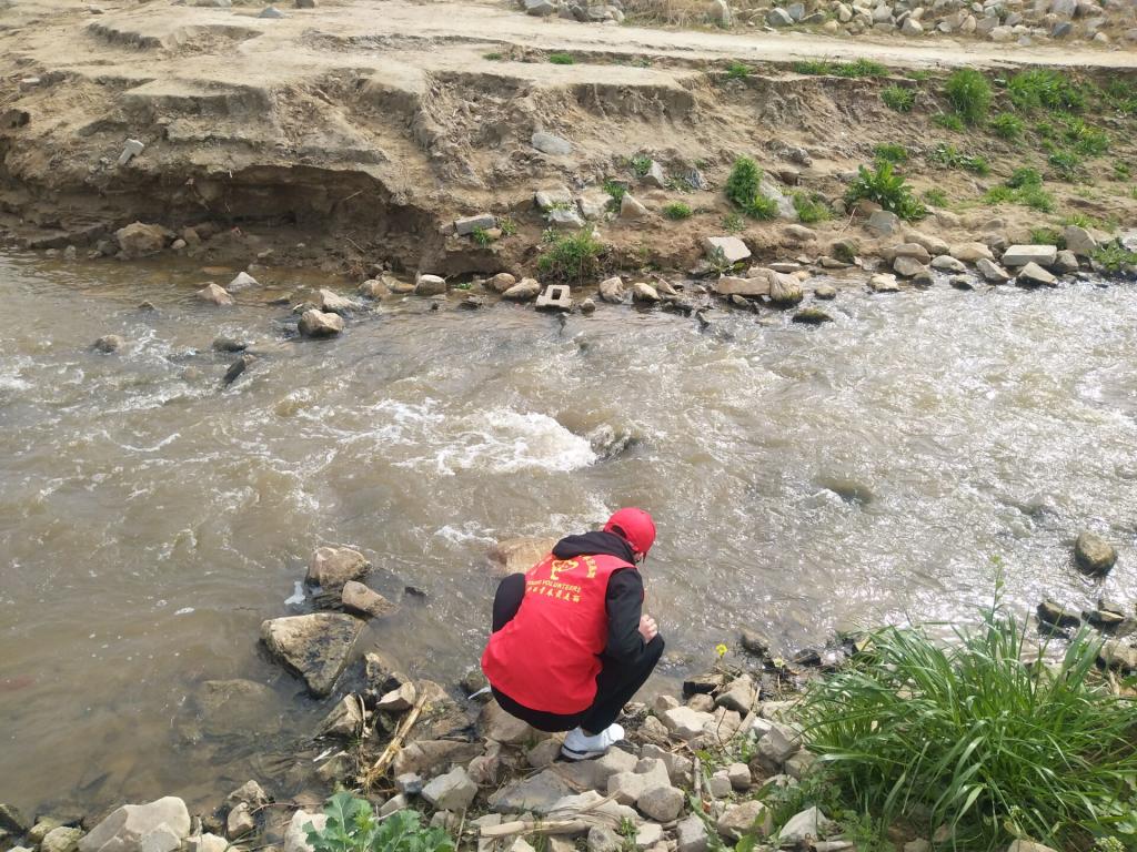三名“绿风”环保志愿者在临河入渭口进行了地表水采样。