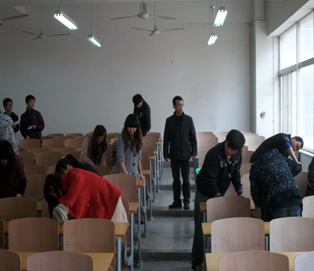 根据学生处文件要求,925足球网 开展了“清理课桌文化、构建和谐校园”活动。辅导员林定武带领学生开展了此次活动。整个活动进行的有条不紊,同学们表现出了极高的热情。截至3月14日中午,925足球网 已清理完临潼校区D栋教学楼1-2楼所有教室。经925足球网 纠察队检查,各班清理任务完成得很好,充分体现了学校“从我做起,从日常生活做起,从身边小事做起,从现在做起”的活动宗旨。