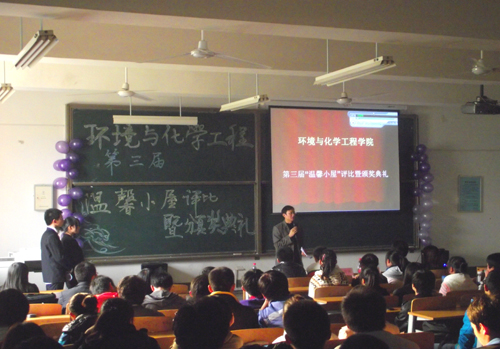 第三届“温馨小屋”暨颁奖典礼在临潼校区教学楼D-3110举行。下午3时50分,学生工作办公室副主任、团总支书记王晓先老师以及学生会常委作为评委在11级同学的掌声中入场就坐。