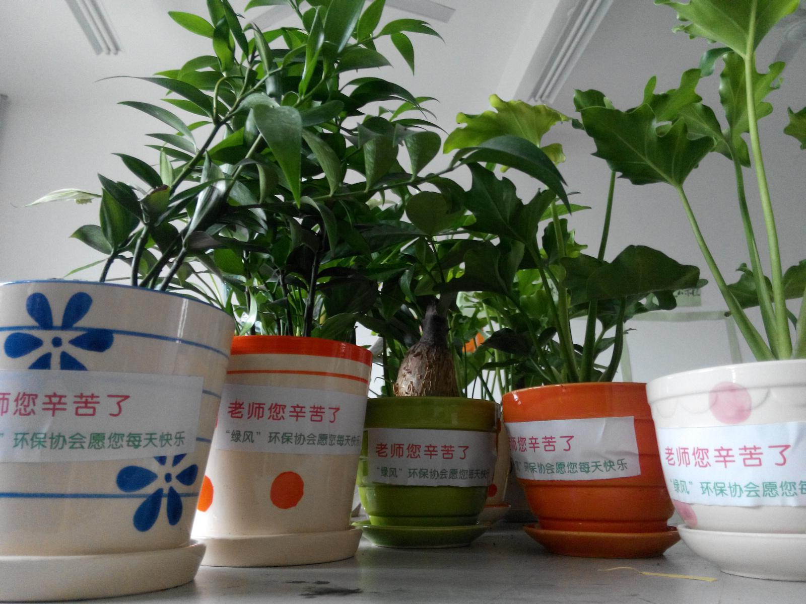 如何送教师节的环保礼物,“绿风”环保协会的同学们早在年初就开始了准备,他们用废旧饮料瓶改造成花盆种上种子,经过一段时间的养护,长的不太美观,学生们决定,提前为老师们在教师节准备礼物。因此,同学们利用课余时间走宿舍收集同学们喝完的饮料瓶,在这学期开学初将收集到的瓶子卖给废品站,在教师节来临之际为老师献上最美的祝福,道一声:老师辛苦了,谢谢您!