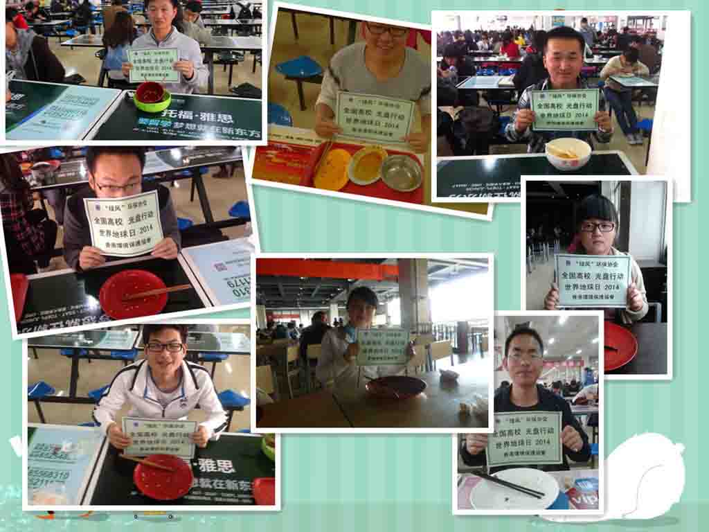 2014年4月22日,在第41个世界地球日之际,“绿风”环保协会在校中心广场将“光盘行动”掀起了活动的高潮。