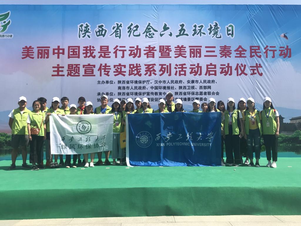 研究生与“绿风”环保协会志愿者等50名学生在西安南门广场参加了由省环保厅、汉中市政府、安康市政府、商洛市政府等主办的“美丽中国我是行动者暨美丽三秦全民行动”主题宣传实践系列活动启动仪式。陕西省副省长陈国强、陕西省人民政府副秘书长王晓驰等十一位领导为西安工程大学参与学生授予旗帜并颁发了志愿者督导证。环化“绿风”环保协会围绕主题,开展了“美丽中国,我是行动者”系列活动。