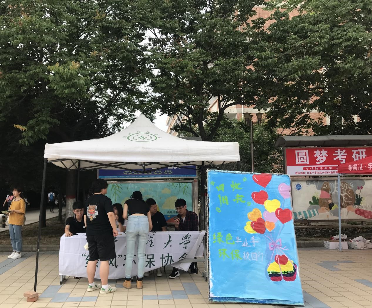 2019年5月27日,绿风环保协会于西安工程大学临潼校区展开了主题为“绿色毕业季,环保校园行”收旧衣活动。本次活动我们将联系“飞蚂蚁”公益组织,挑选出合适的捐赠衣物,将其再次利用捐赠到贫困山区里去,帮助更多的人,同时也可以唤醒同学们的节俭意识,更好的利用资源。