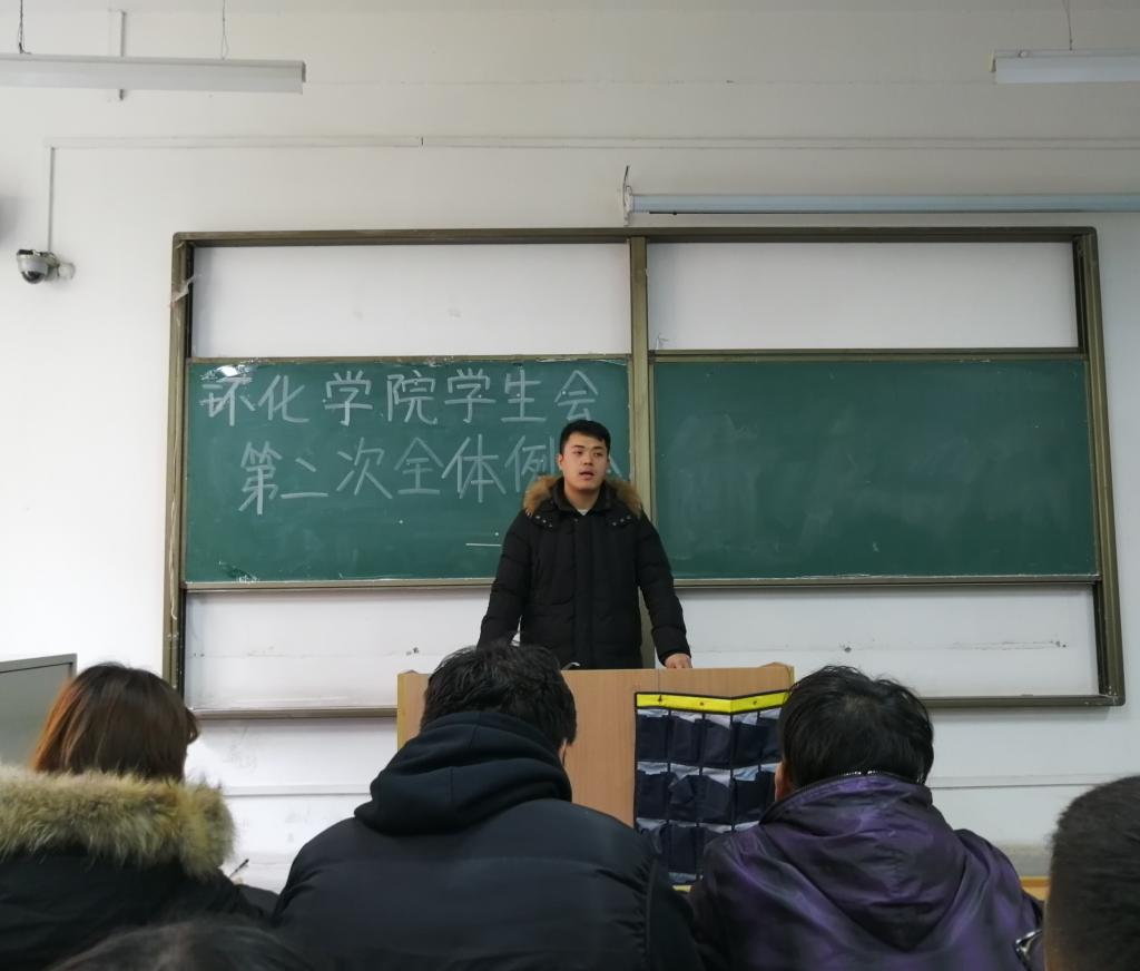首先,团总支书记贾天昱发表讲话,他宣布了学生会内部的人事变动并强调要多举办有特色、有意义的活动,希望每位学生会成员都以端正的态度对待自己工作,做到工作学习两不误;接着,学生会主席耿璧程讲话,他对全体成员的付出和努力表示感谢并从实际出发为大家分享了自己的工作经验,祝愿每位同学能在工作中学到自己真正想到的东西;然后,学生会常务副秘书长张鹏远讲话,他提出“我们应该在去年已有活动的基础上进行创新,针对去年活动流程出现的漏洞和问题进行填补和反思,争取将活动效果做好最好”,并叮嘱到:活动要注意细节,注重创新,做到三思而后行;最后,新任学生会副主席张渼珠讲话,她向大家的信任表示感谢,希望能和大家在工作中纠正问题改正问题,在以后的活动中和大家一起进步、一起成长。