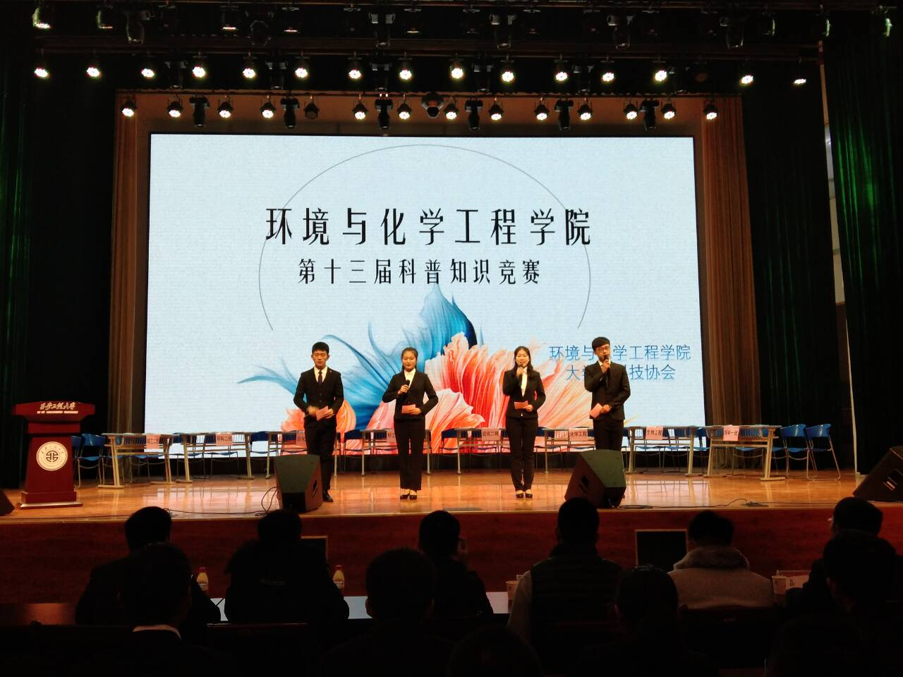 贾天昱在致辞中指出,同学们应该积极参加学生科技活动,丰富科技知识,培养团队协作能力,展现当代大学生良好的精神风貌,在比赛中,赛出水平,赛出风采。随后进行精彩的比赛环节,本次大赛分为志在必得、齐心协力、最强大脑和尘埃落地四个环节。第一环节主要考验队员们对基础科学知识的了解情况,台上选手们沉稳作答,观众们掌声不断。第二环节需要队员们争分夺秒的答完判断题后进行猜词题,队员相互配合“你画我猜”,极大地提高了比赛的趣味性。第三环节视频题,各队展现了丰富的知识储备,赛况异常激烈,现场气氛达到高潮。最终,比赛的比分在尘埃落地环节定格。环科1802班、化工1801班和环科1801班分别荣获本次大赛的第一、二、三等奖,其余5支队伍获得优秀奖。