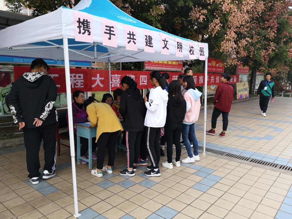 学生会自主发起的主题为“庆四十华诞,创文明校园”倡议签名活动在临潼校区中心广场顺利举行。活动吸引了千余名学生参与,共发放倡议书五百余份。