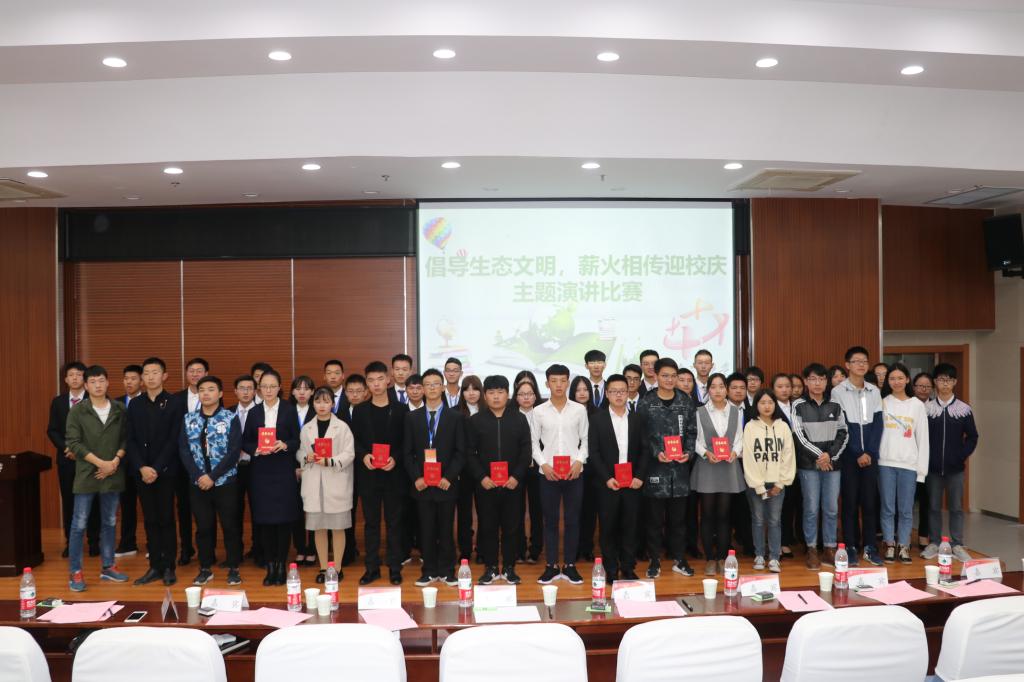 此次“倡导生态文明,薪火相传迎校庆”演讲比赛的成功举办,既给广大学子提供了一个展现自我、提升自我的舞台,也锻炼了同学们的演讲能力和语言表达能力。让同学们从活动中了解环境问题,时刻树立环保意识,领略环境保护的重要性。(赵纲 朱珠)