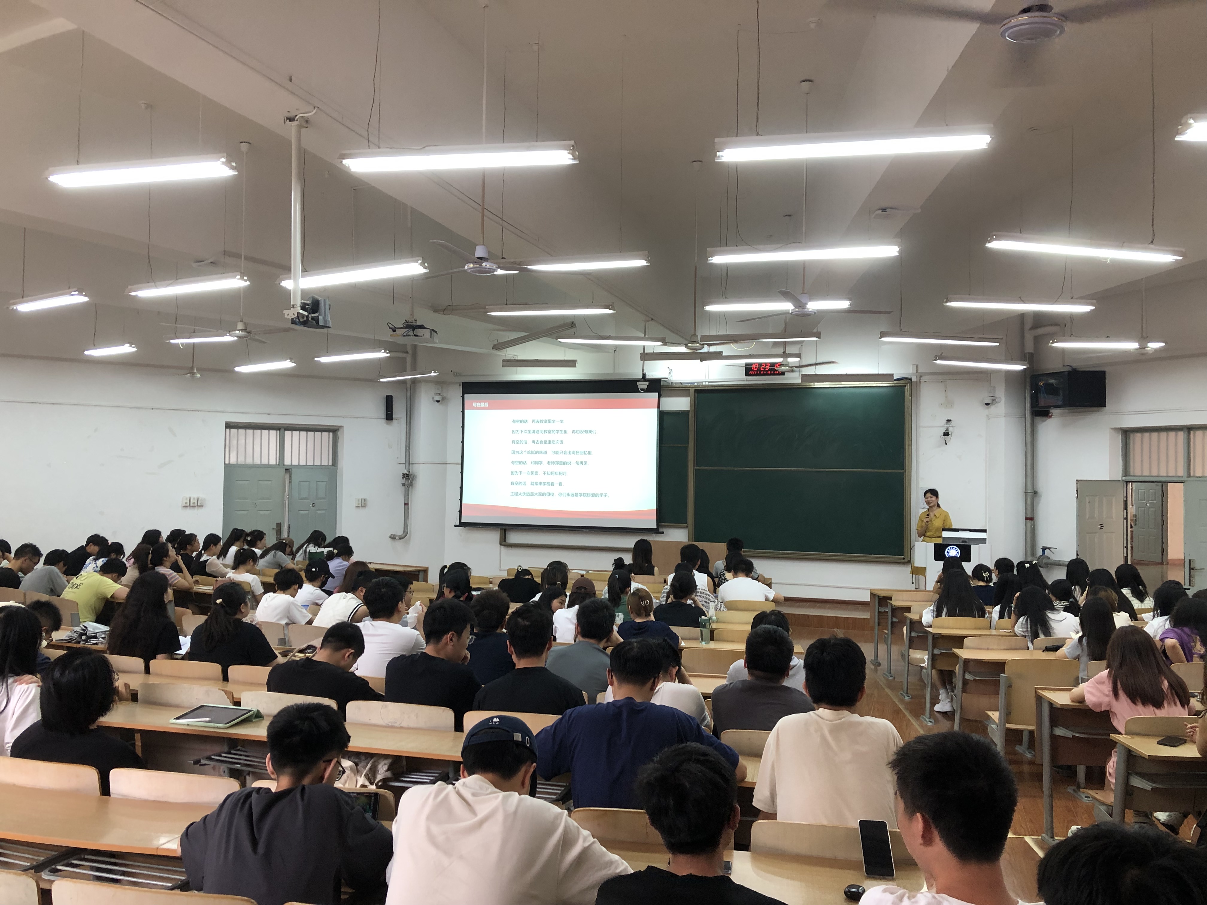 于教学楼B-133召开2023届毕业生文明离校工作部署协调会议。学院党委副书记林定武、毕业生年级辅导员刘婧及2023届全体毕业生参与此次大会。