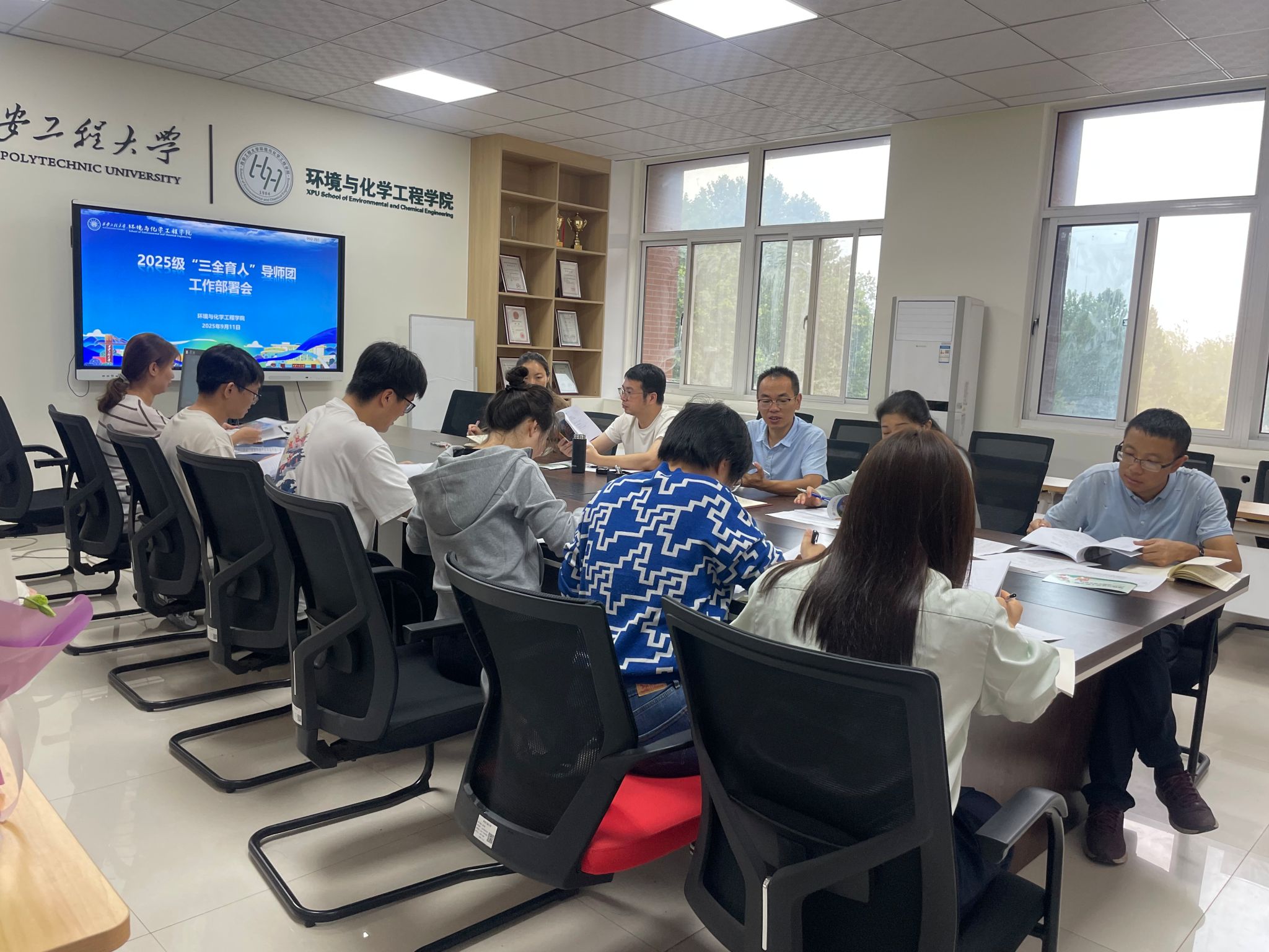 在236会议室组织召开2025级“三全育人”导师团工作部署会。学院党委副书记林定武、学工办主任朱瑾、2025级新生辅导员刘婧及导师团全体成员参加会议。