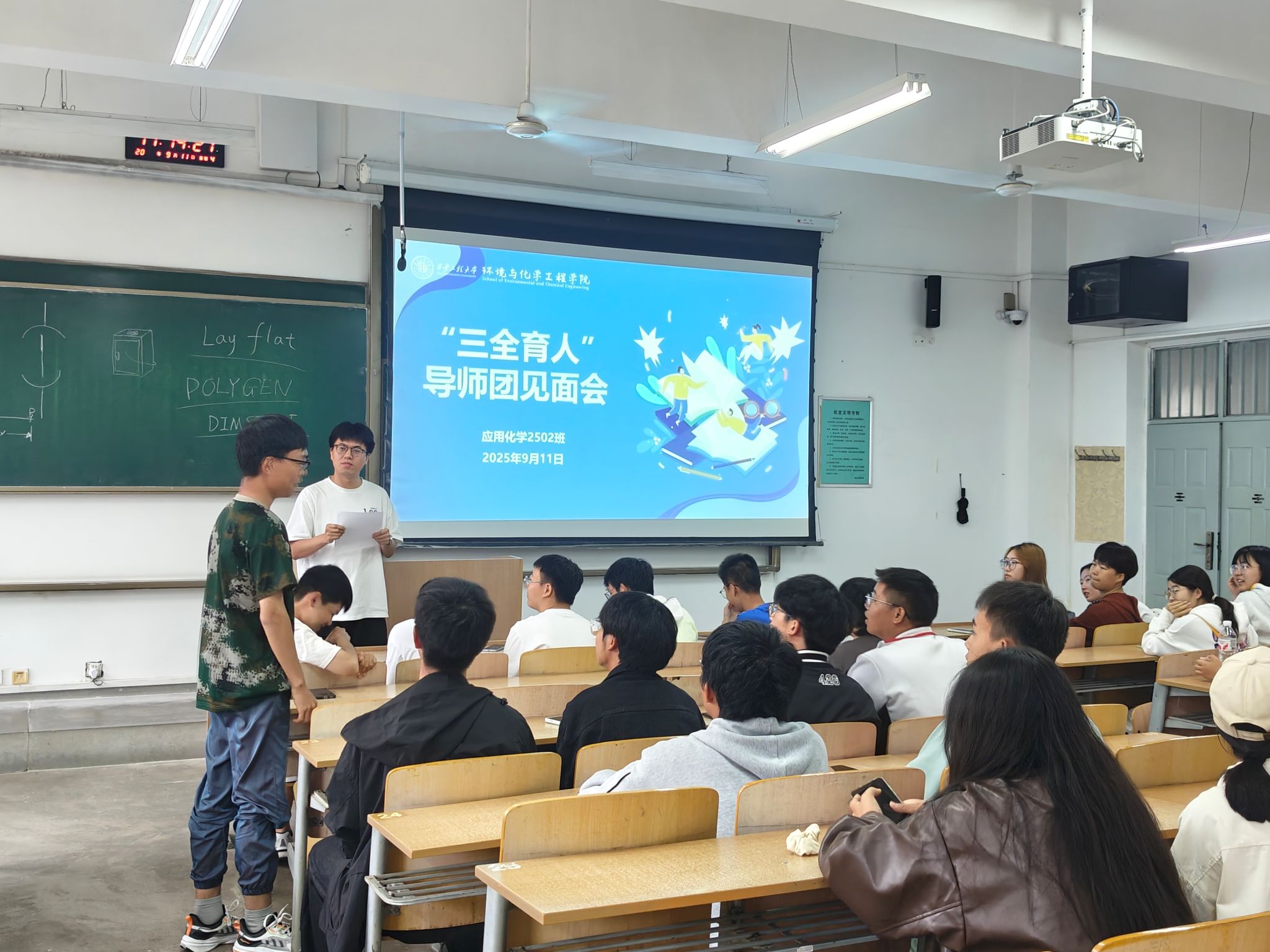 随后,各班新生与班主任开展面对面交流。班主任向同学们介绍了个人基本情况、研究方向、所承担课程,与同学们围绕大学适应、学习方法、日常安全、课外拓展等内容进行了深入交流,并耐心解答同学们的疑问。部分班级通过自我介绍、趣味互动等方式增进彼此了解,现场气氛温馨热烈。