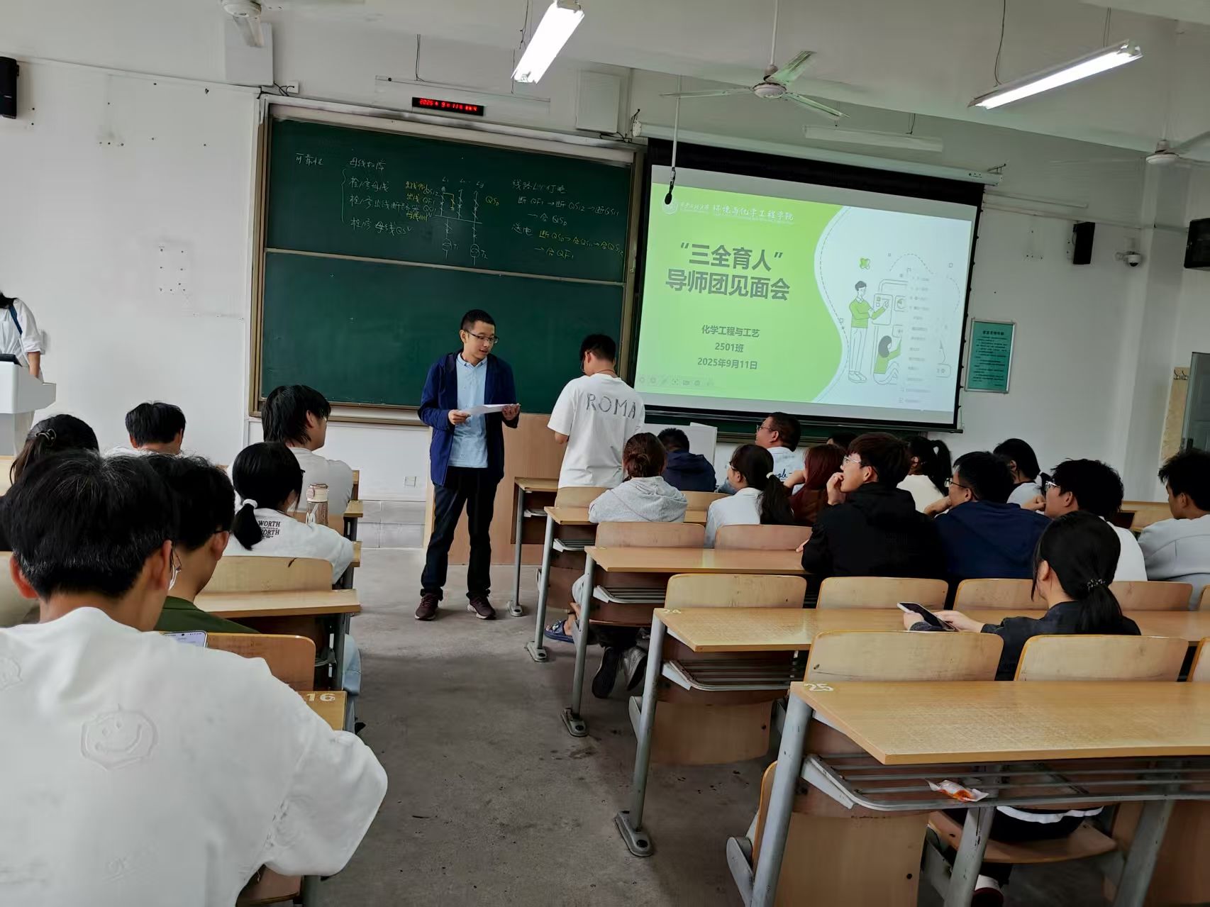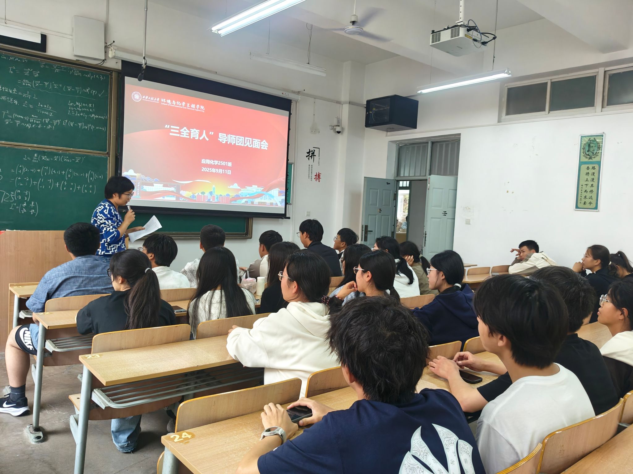 在A栋教学楼组织召开2025级新生专业介绍暨班主任见面会,各系主任、“三全育人”导师团导师和全体2025级新生共同参与。