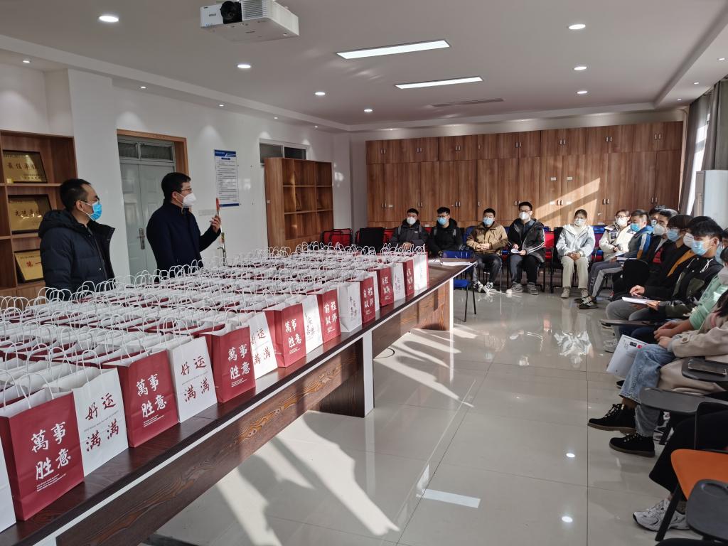 于2022年12月12日在环化楼507会议室举行2023届考研学子福袋发放仪式,学院副院长武占省、党委副书记林定武、团总支书记贾天昱及2019级考研学生代表们参与此次活动。