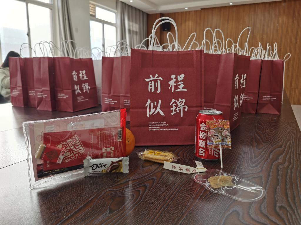 为23届学生准备的福袋中,定制的礼品刻上前程似锦、万事胜意是学院对大家最殷切的期望,来自全校各个学院低年级学生手写的祝愿是对大家最美好的祝福。