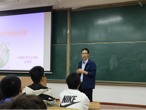 于临潼校区A-224召开环境工程专业介绍会。环境工程与科学系主任王理明和全体2020级环境工程专业学生。