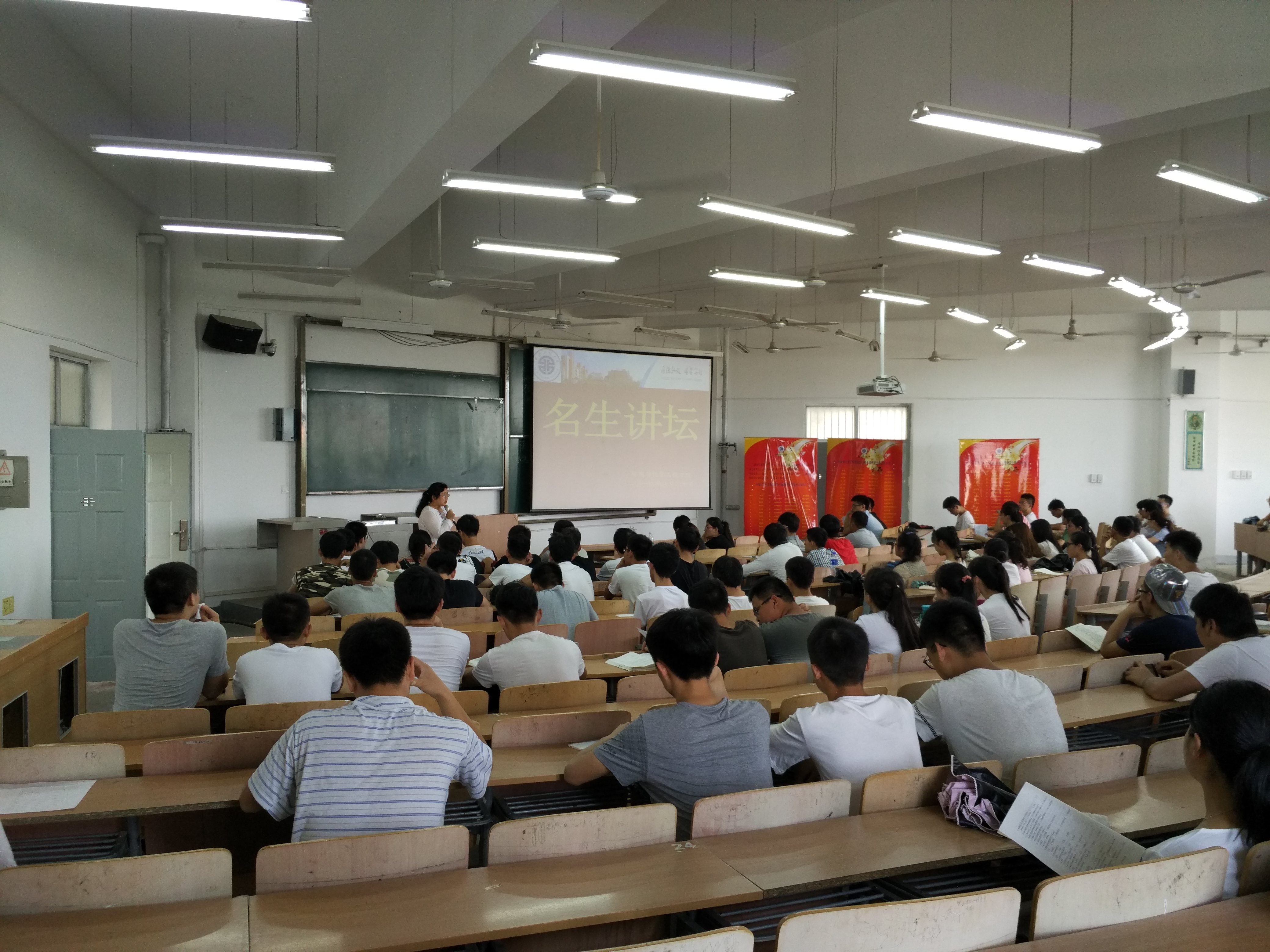 考研情况及就业形势为大家作了分析。袁老师指出“名生讲坛”是我校的光荣传统,邀请即将毕业的学生通过自身经历现身说法,让低年级同学向身边的榜样学习,使同学们的大学时光绽放绚丽的光彩。