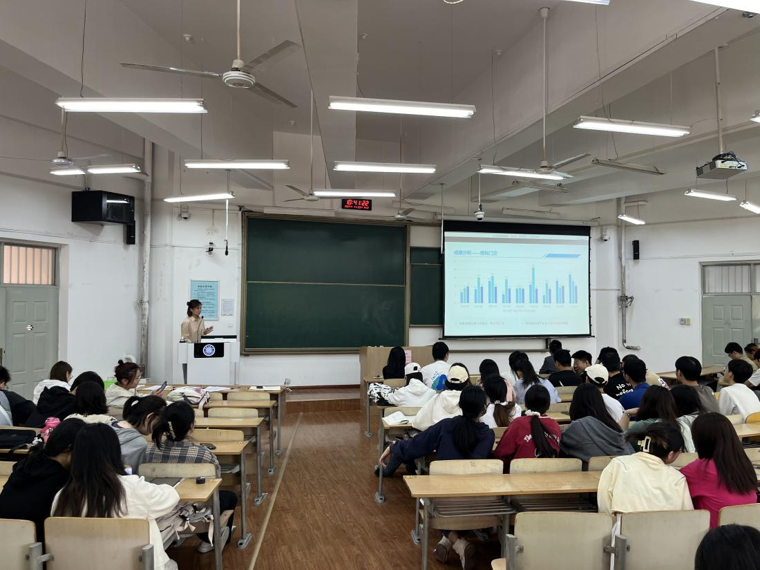 在会议上,耿倩老师详细解读了我校毕业审核要求。她强调了创新学分、毕业证书和学士学位证书的获取条件等关键内容,帮助同学们更清晰地了解自己的学业进度,以便有针对性地进行学业规划和提升。紧接着,刘婧老师对21级学生入学至今的成绩进行了深入分析。她通过数据和图表向学生们展示了各班级学业发展的整体状况,使学生们对自己的学习成效有了更为客观的认识。同时,刘老师还分享了19级、20级学生的考研成果,为有志于继续深造的学子提供了宝贵的经验和建议。最后,学院党委书记林定武老师总结讲话。他强调了大学教育的意义,并鼓励学生们珍惜大学时光,持续努力,不断追求卓越。同时他鼓励同学们能够以更加积极的态度面对学业挑战,全面提升个人素质,为实现自己的梦想而不懈奋斗。