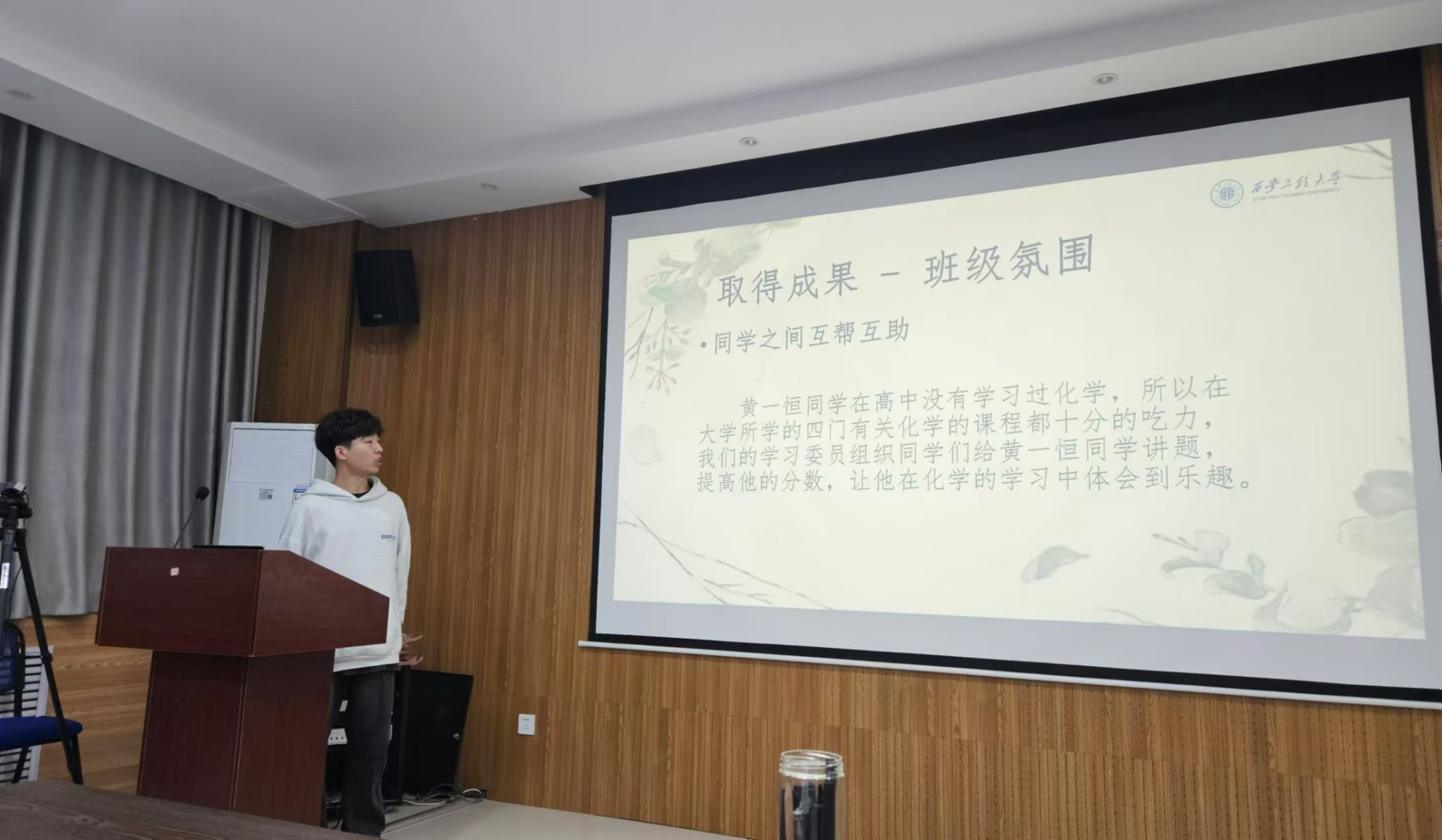 “优良学风示范班”风采展示在环化楼507会议室举行。学院辅导员张易泽及各班班长团支书到场参加。