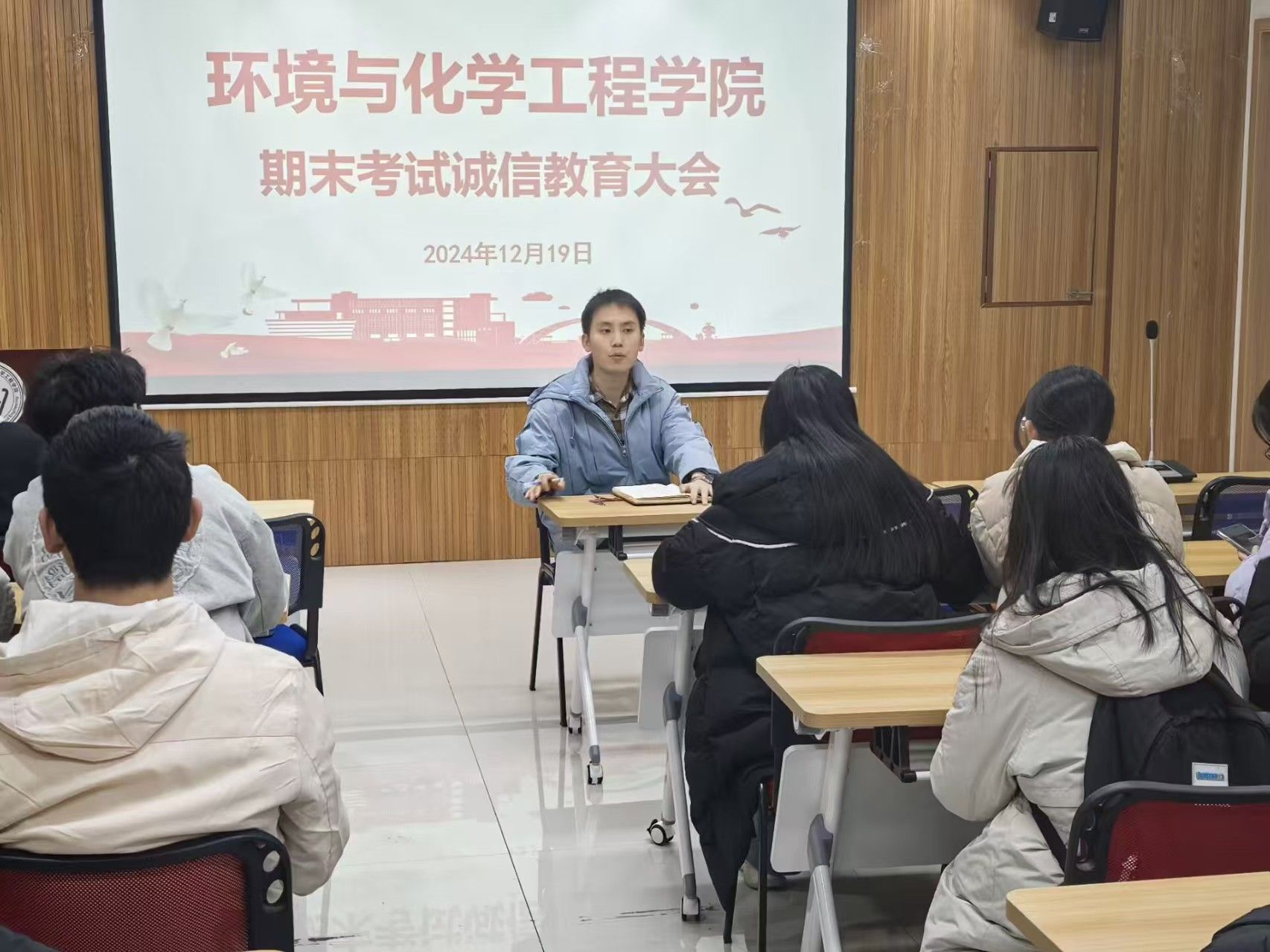 507会议室召开2024级期末考试诚信教育大会,2024级全体班长、团支书、学习委员参会。会议由24级辅导员张易泽老师主持。