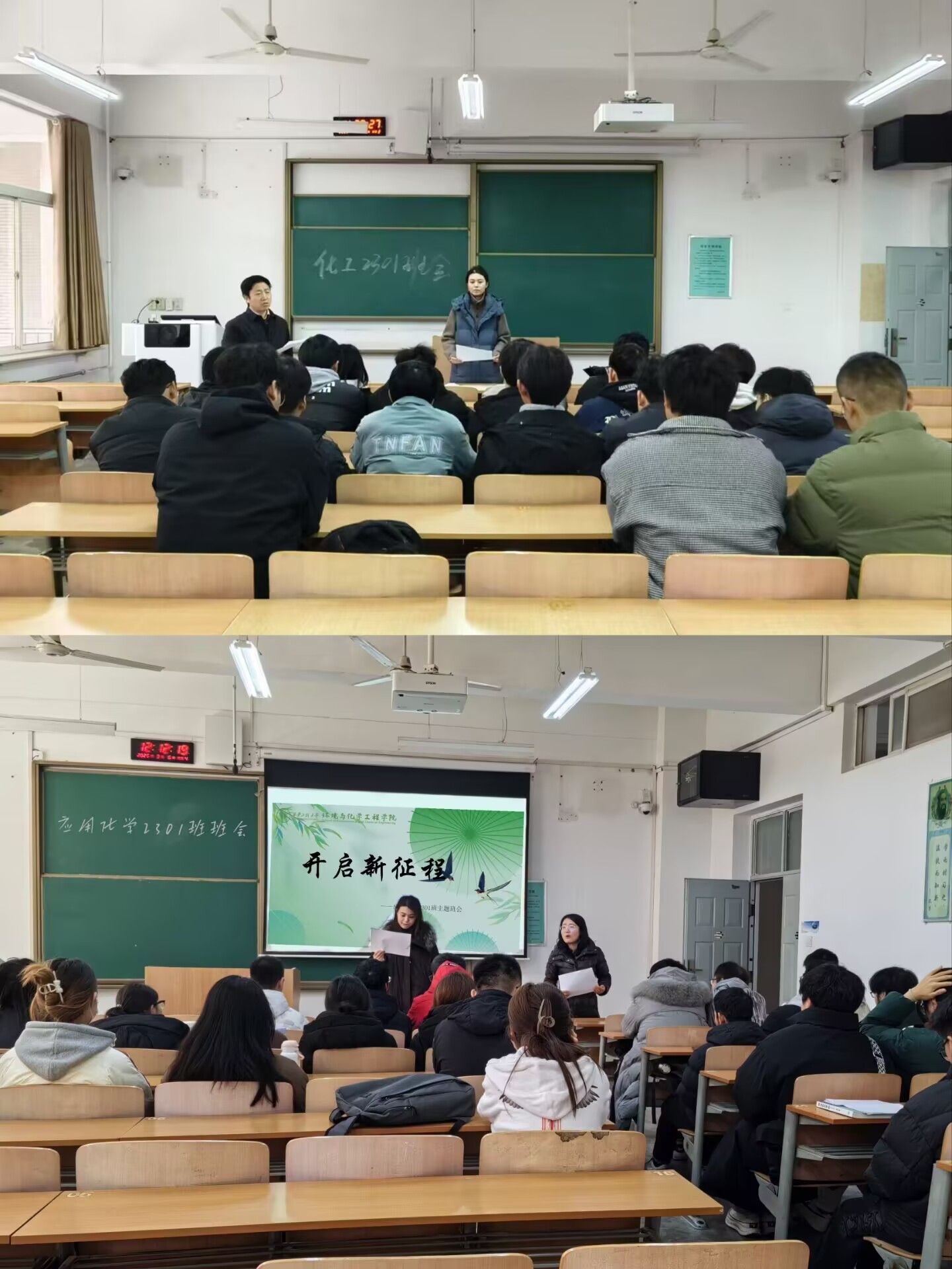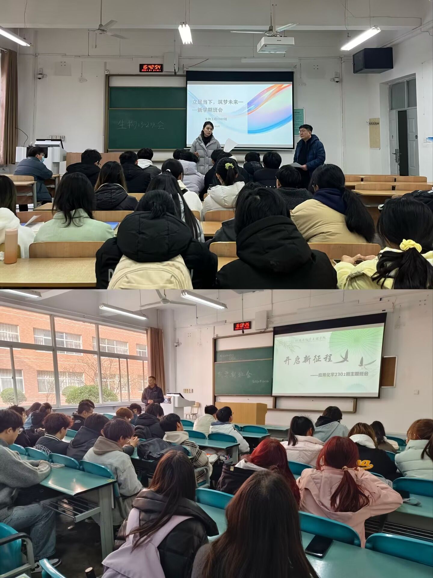 2023级10个班级分别召开了春季开学班会。本次班会以"春启新程,心向未来"为主题,由辅导员盖潇宇与各班班主任共同主持,通过总结、展望与关怀三个环节,为新学期注入了温暖的力量。