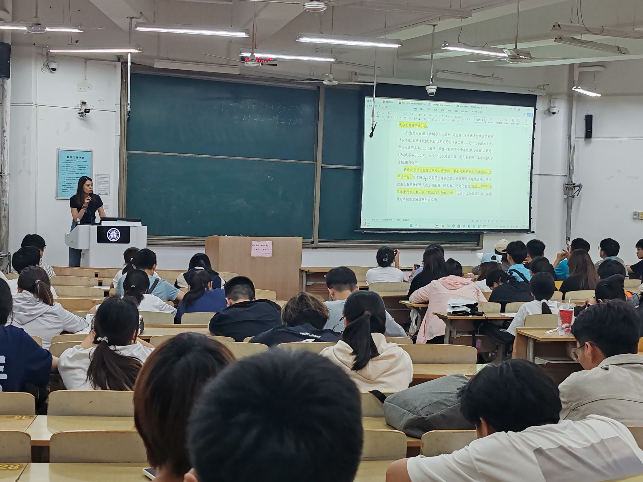 在教学楼B137教室开展家庭经济困难学生认定工作政策宣讲会。本次宣讲会由学院资助辅导员盖潇宇主讲,各年级班团成员和班级评议小组代表参会。