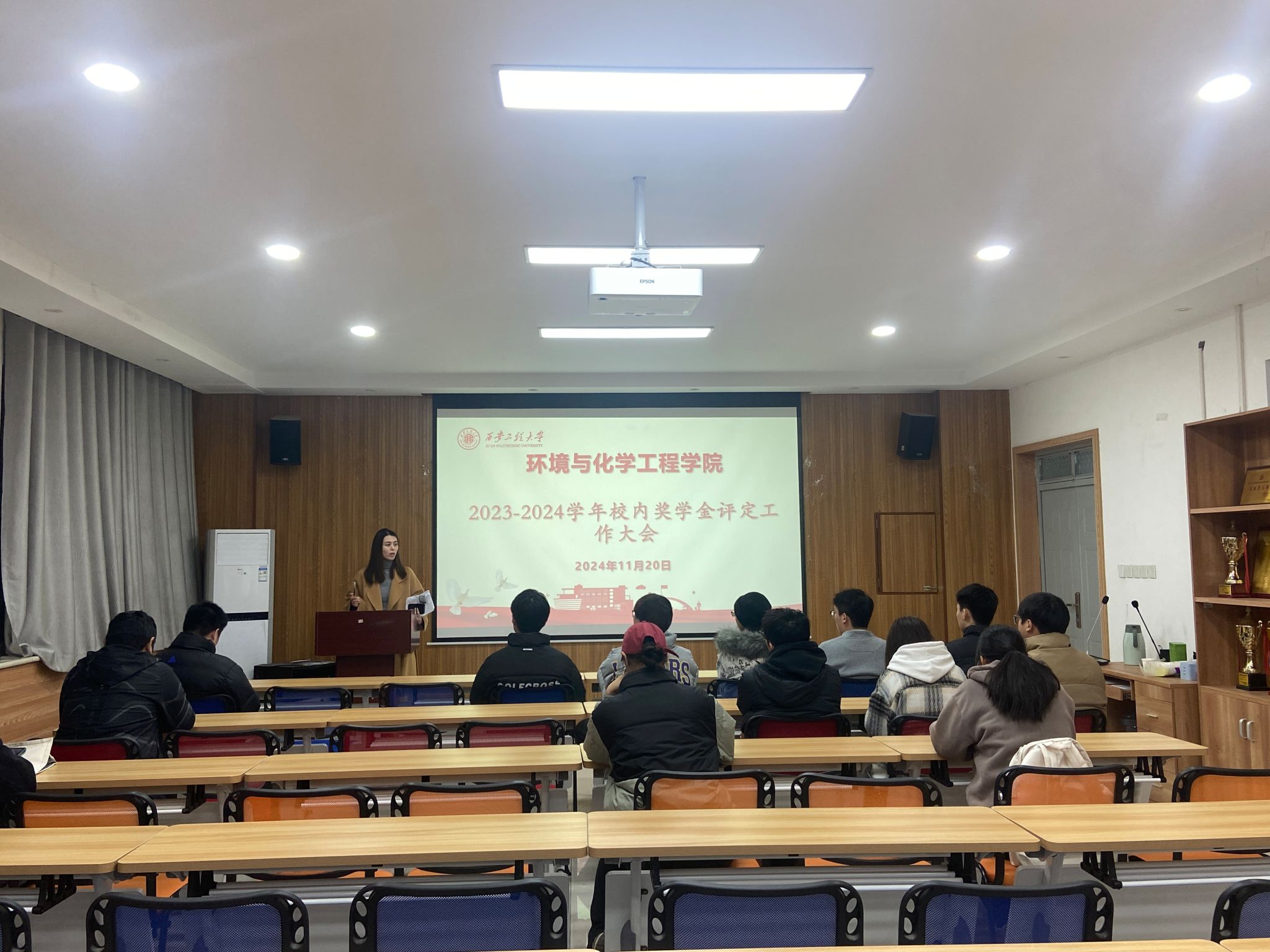 于2024年11月20日开展校内奖学金评定工作大会。本次大会由学院资助辅导员盖潇宇主讲,21、22、23级班长和团支书参加会议。