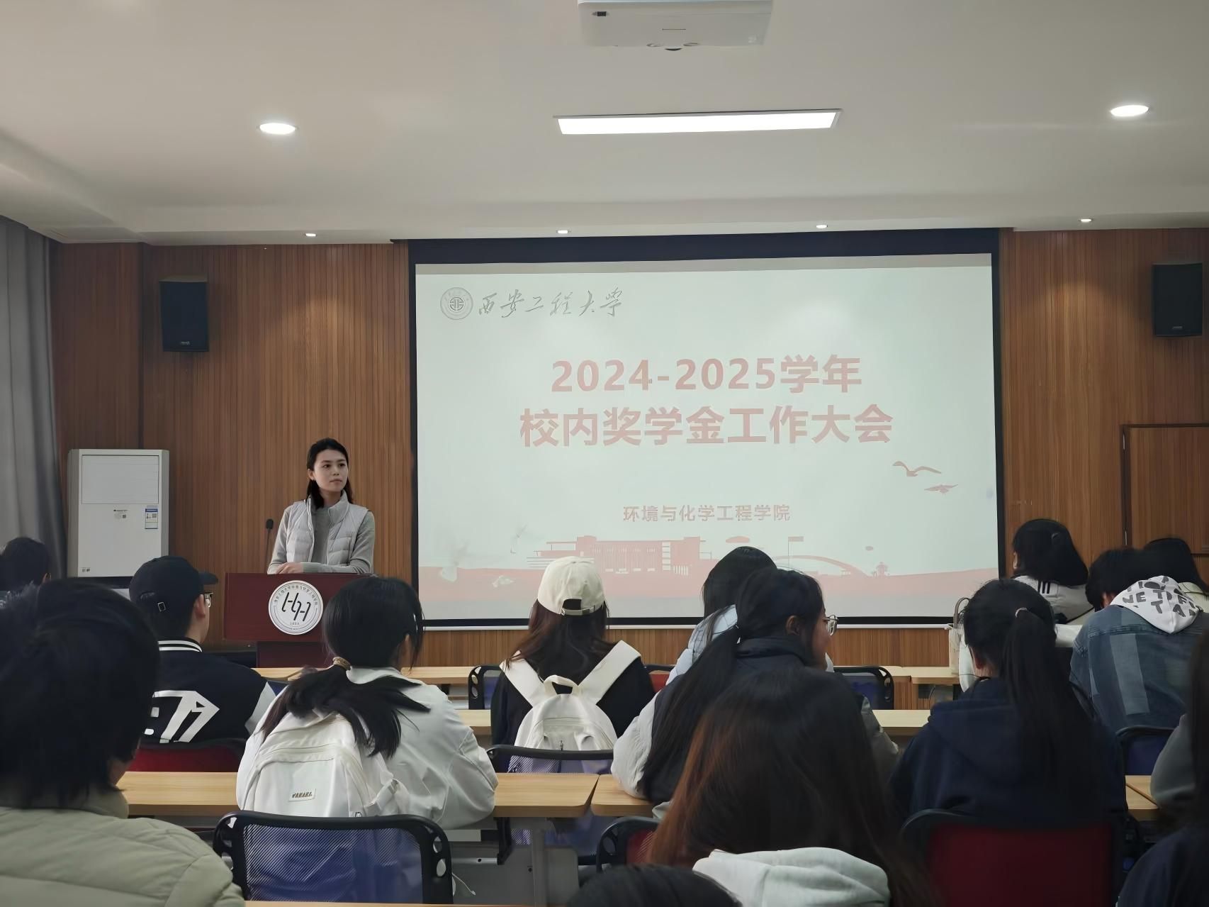在环化楼507会议室组织召开2024-2025学年校内奖学金政策宣讲及评定工作大会。本次大会由学院资助辅导员盖潇宇主讲,2022级、2023级及2024级全体班长和团支书参会。