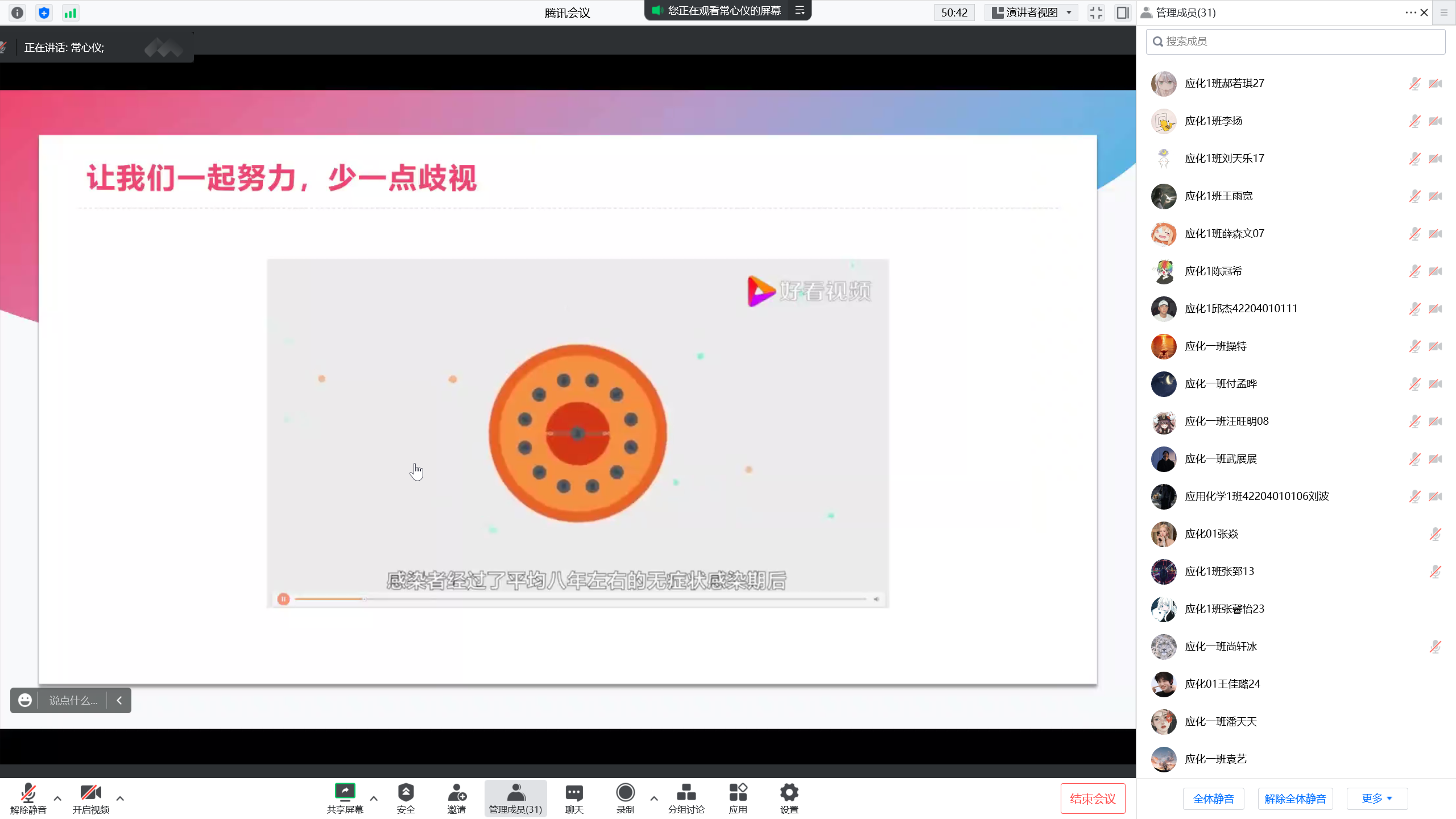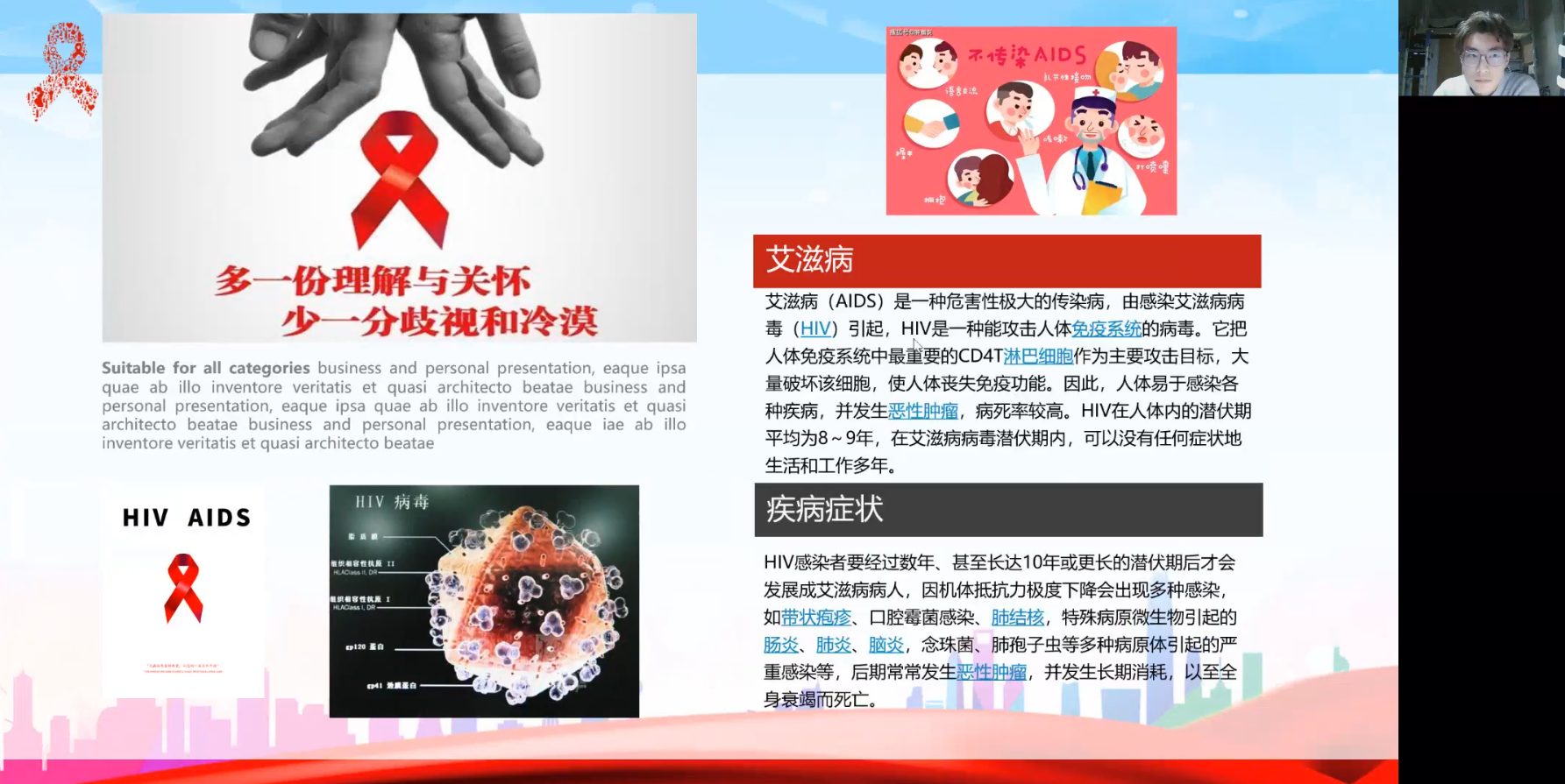 各班于12月1日线上开展“关爱艾滋病人,共建美好家园”心理主题班会。