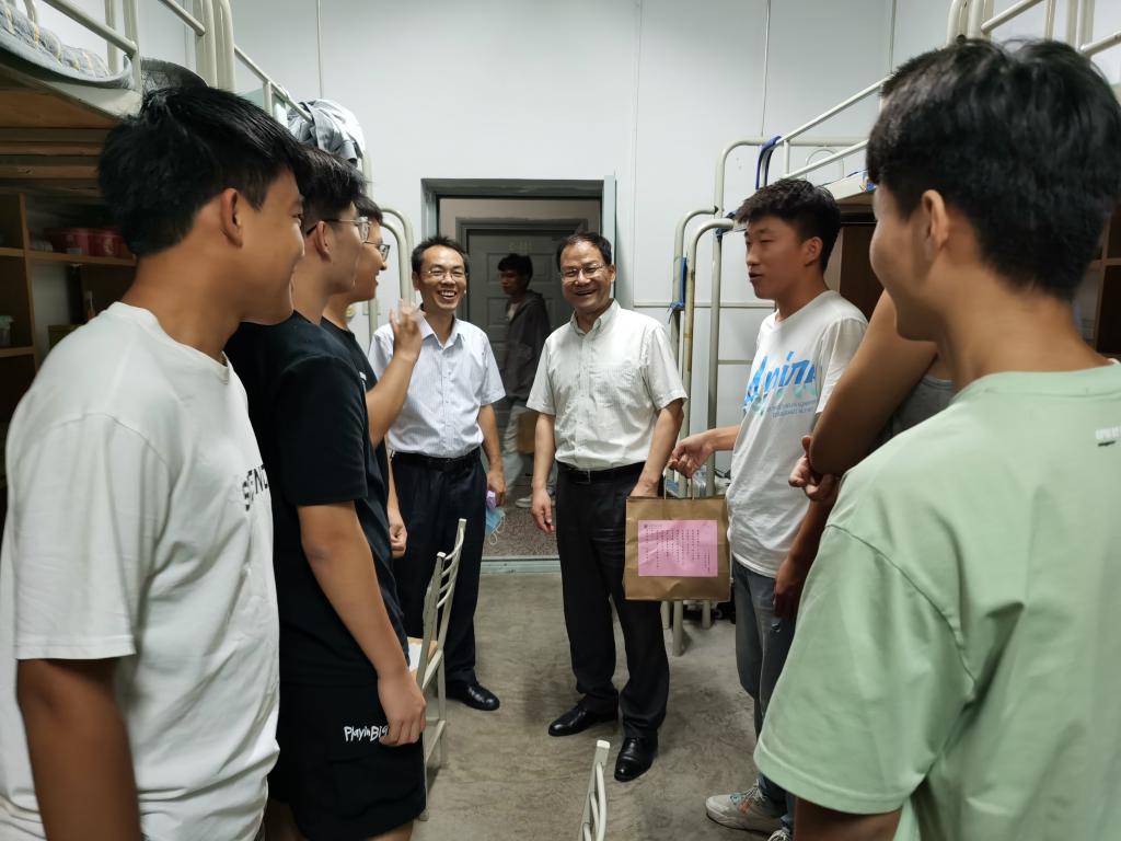 院长张洛红、党委副书记林定武、辅导员贾天昱来到新生公寓,为2022级新生送上中秋节日祝福。