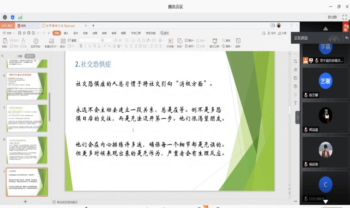 译心心理社于线上开展了一次特殊的心理讲座,参加本次讲座的有理论部部长庞坤宇和各班宿舍长。本次活动由庞坤宇主持。